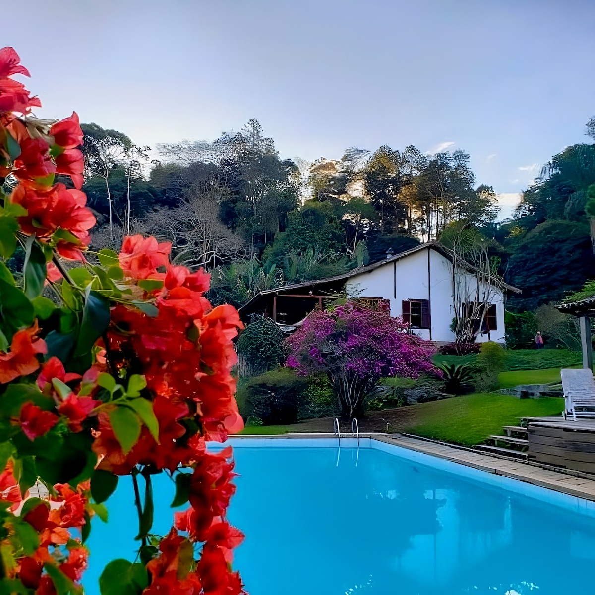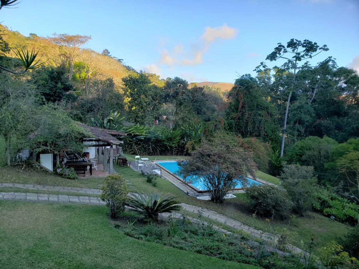 Sua casa na serra. Refúgio ideal tanto para os dias quentes de verão, quando as casas continuam frescas, quanto para o inverno, onde a lareira aquece e traz ainda mais aconchego. Situado nas redondezas do Parque Estadual dos Três Picos, em Teresópolis – RJ, o Sítio das Montanhas fica a apenas 15 minutos do centro da cidade. Casa independente, plana, cozinha pronta para preparar suas refeições, como se estivesse em casa. Sítio com piscina, circuito para caminhada, trilha na montanha, linda vista