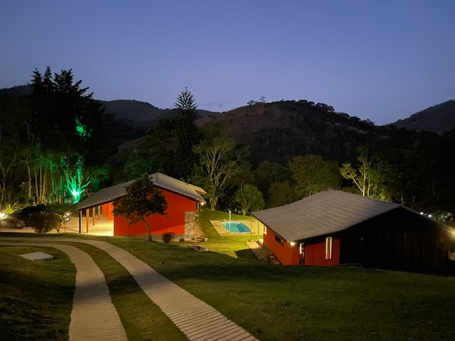 Casa de campo com 6 chalés. São 11 quartos confortáveis que acomodam até 22 pessoas. Mais há opção de se adicionar uma casa próxima na beira do lago com 2 quartos para mais 4 pessoas. Solicite o link desta casa. Piscina, sauna, churrasqueira, cozinha toda equipada, sala de TV, home office. A 30 minutos de Itaipava e 2,30 min do Rio. Todo acesso por asfalto. Internet fibra ótica e Starlink Todo espaço fica exclusivo para quem aluga,