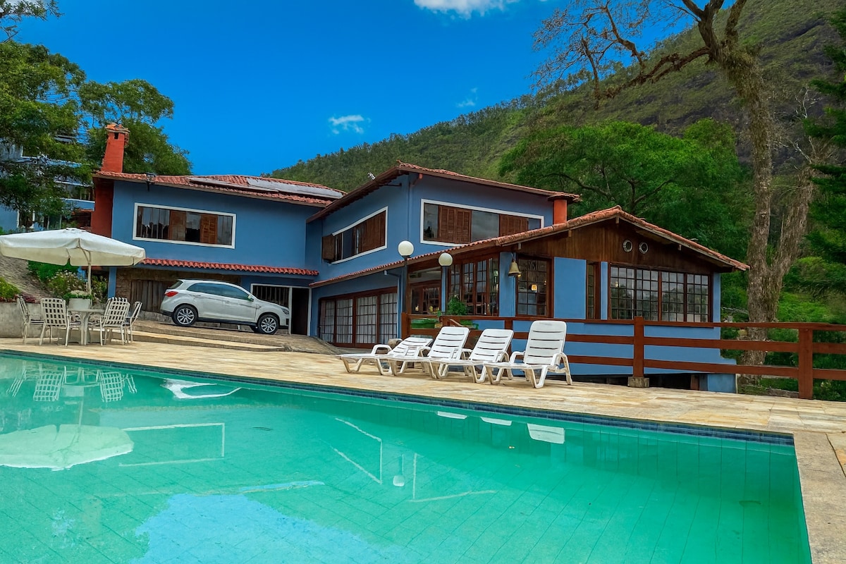 Aproveite essa linda e espaçosa casa na região serrana em Teresópolis/RJ. Está localizada no bairro Cascata dos Amores, charmoso e muito sossegado. Uma área residencial cercada por mata virgem, montanhas e próximo a cachoeiras. Lugar tranquilo com uma linda vista. Ideal para passar uns dias de descanso, home office, curtir fins de semana, feriados, férias, ou celebrar datas especiais.