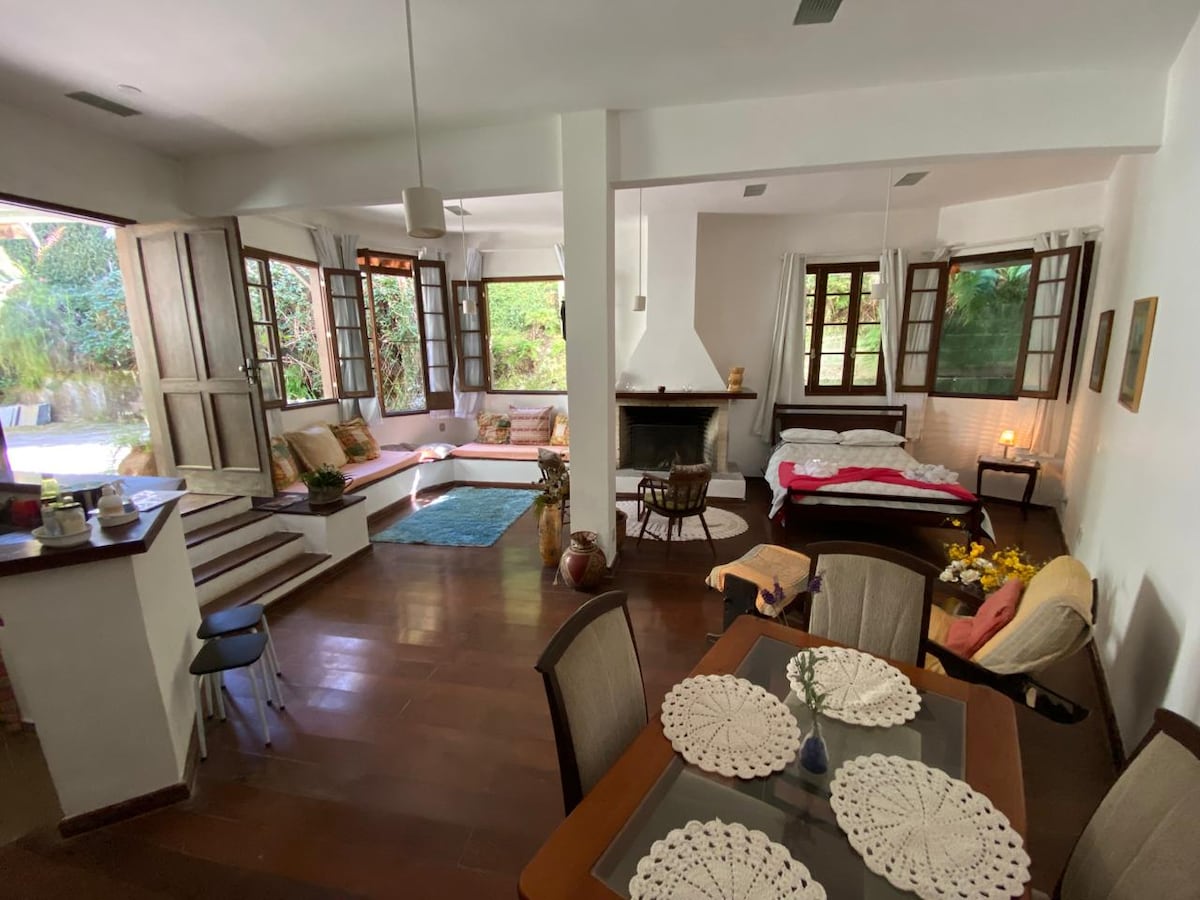 Casa de campo com decoração rústica e harmoniosa em ambiente familiar. Local perfeito para quem busca paz, tranquilidade e muito verde. Priorizamos oferecer um espaço limpo, conservado e aconchegante. Além de ser um lugar de descanso, oferece também lazer para diferentes idades. *Nossa casa está situada em região rural. Não é necessário entrar no centro de Teresópolis.