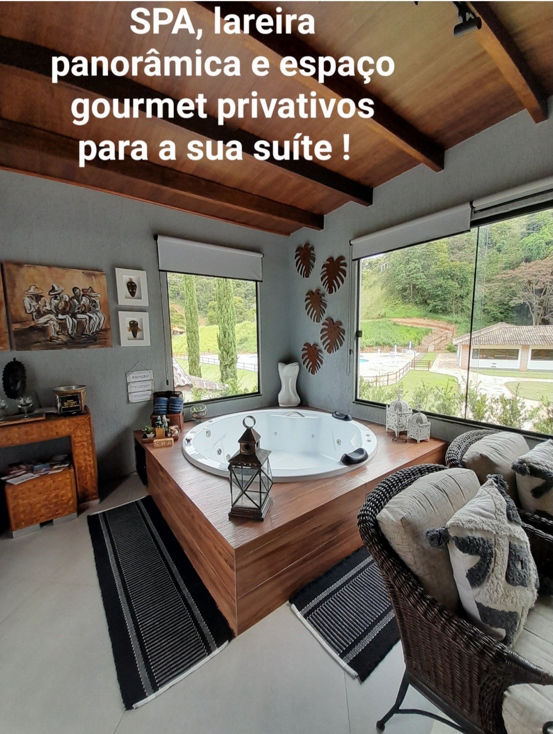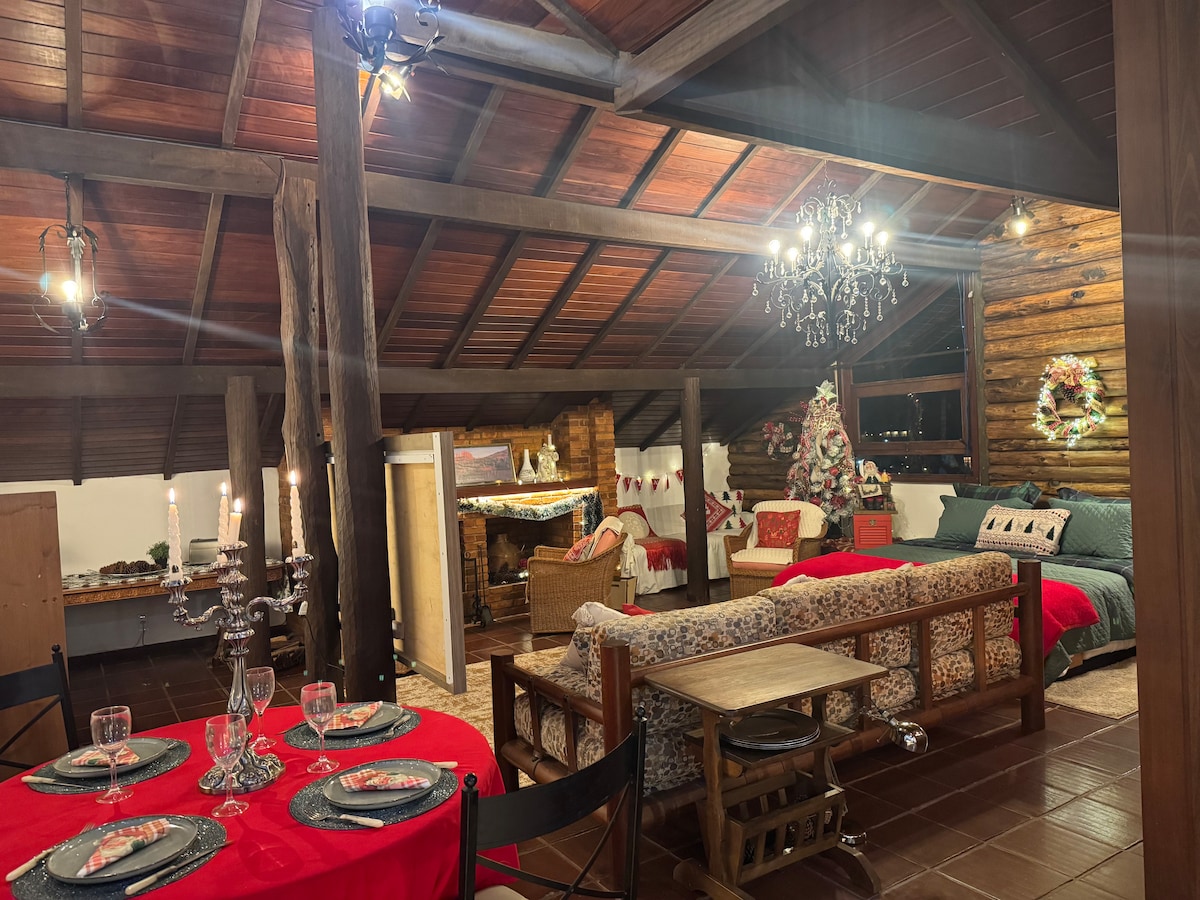 Acomodação charmosa e AMBIENTE FAMILIAR perfeita para um fds repleto de paz . Espaço gourmet incrível ! Adega climatizada ,frigobar etc ... Uma estilosa lareira de vidro com vista para piscina. Confortável hidromassagem de 4 lugares. Decoração agradável e pitoresca. Td pensado com carinho para a sua melhor acomodação ! No entorno, bares, bons restaurantes , farmácia, padaria , mercado e hortifrutti.