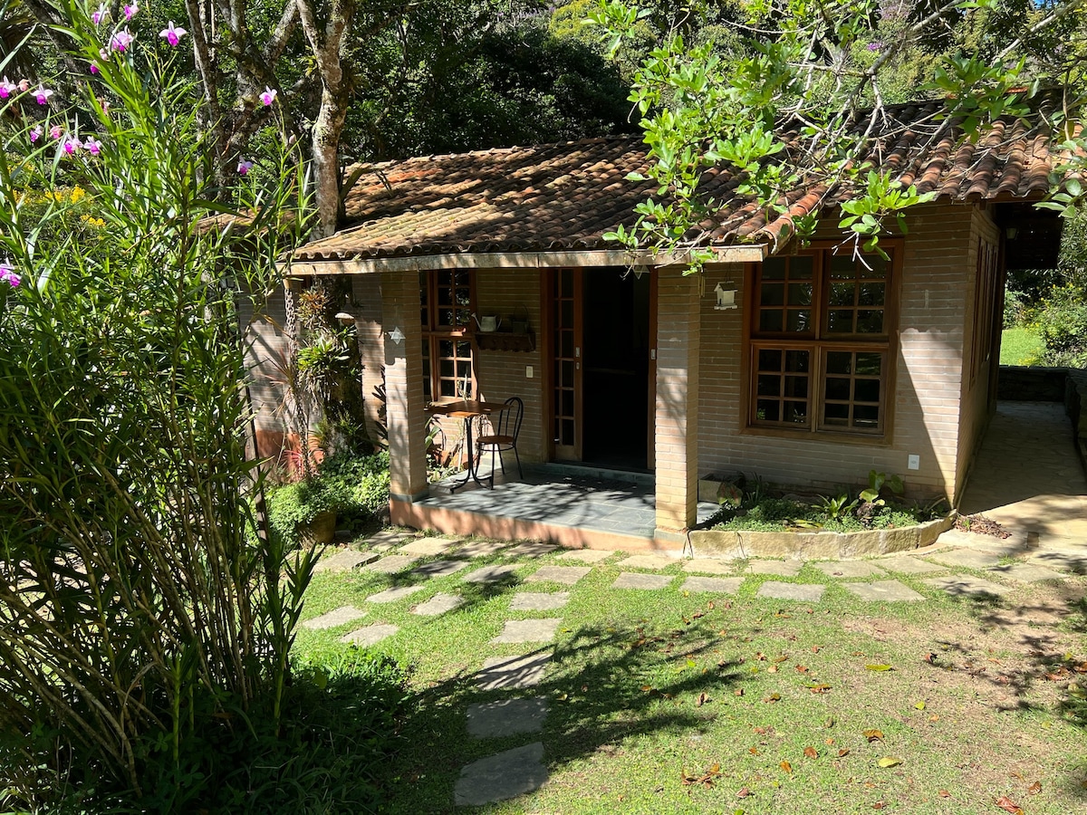 Casa de hóspedes, tipo chalé independente da casa principal, aconchegante bem localizada junto ao Parque Nacional da Serra dos Órgãos. Cercada pela Natureza. De fácil acesso aos principais pontos turísticos de Therezópolis. Com lindo jardim, localizada na área mas nobre da cidade não é condomínio, uma casinha de hóspedes .