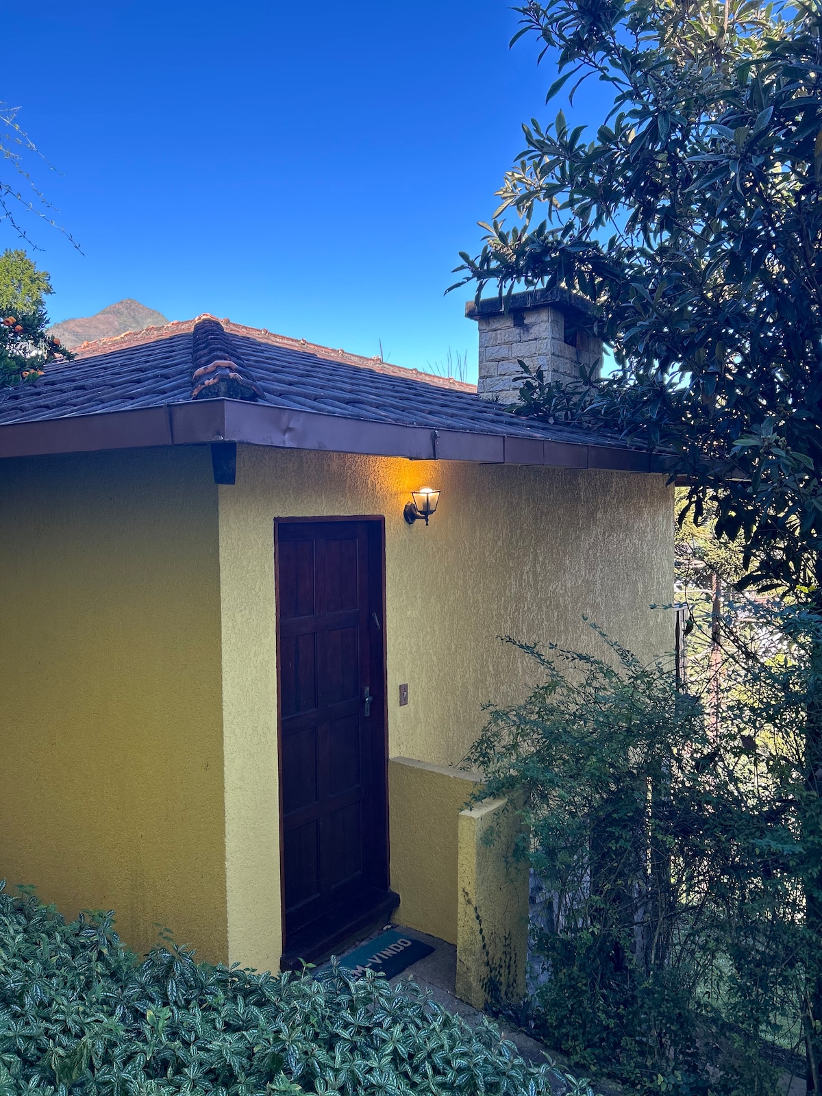 Casa de hóspedes, tipo chalé independente da casa principal, aconchegante bem localizada junto ao Parque Nacional da Serra dos Órgãos. Cercada pela Natureza. De fácil acesso aos principais pontos turísticos de Therezópolis. Com lindo jardim, localizada na área mas nobre da cidade não é condomínio, uma casinha de hóspedes .