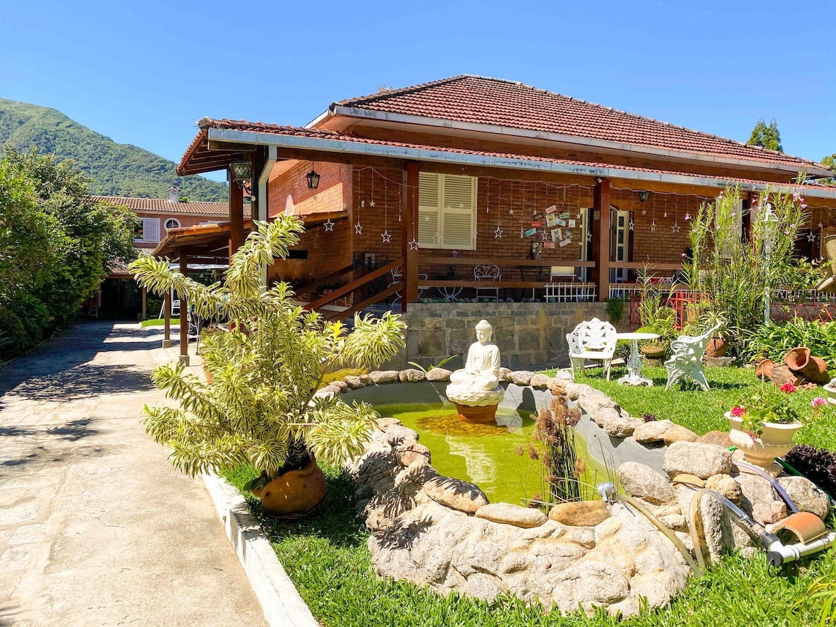 O lugar é muito arejado e com muito verde. É espaçoso e armonioso. Casa térrea que facilita a mobilidade. Localizada na cidade e a 500 mts do comércio e apenas 3 km do centro de Teresópolis, assume ares de sítio no interior. Ideal para quem deseja um lugar calmo e tranquilo. Para famílias e grupos de amigos. Pequenas comemorações.