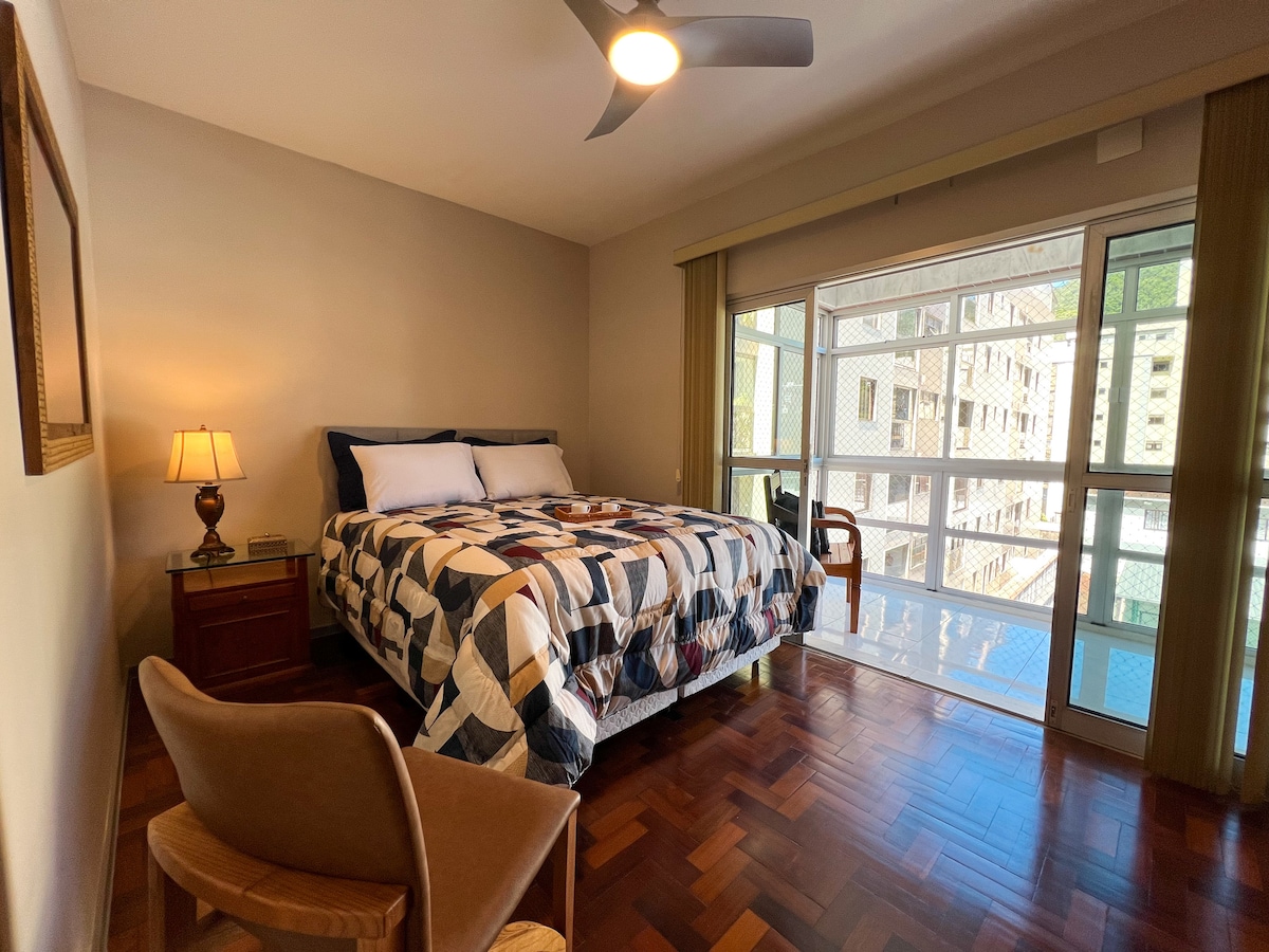Divirta-se com a família num lugar cheio de estilo. Estrategicamente localizado para oferecer o melhor da cidade. Apartamento espaçoso, bastante iluminado e bem decorado. Perfeito para famílias, casais ou viajantes sozinhos que gostam de se aventurar na região serrana. Dispõe de: . Filtro de água potável . Camas (Queen Size e Casal) Guldi Original . Wi-Fi de 600Mb . Splits (sala e quartos) . TV 50 com streaming . Lava & Seca (10kg) . Portaria 24h . Nespresso e cafeteira tradicional