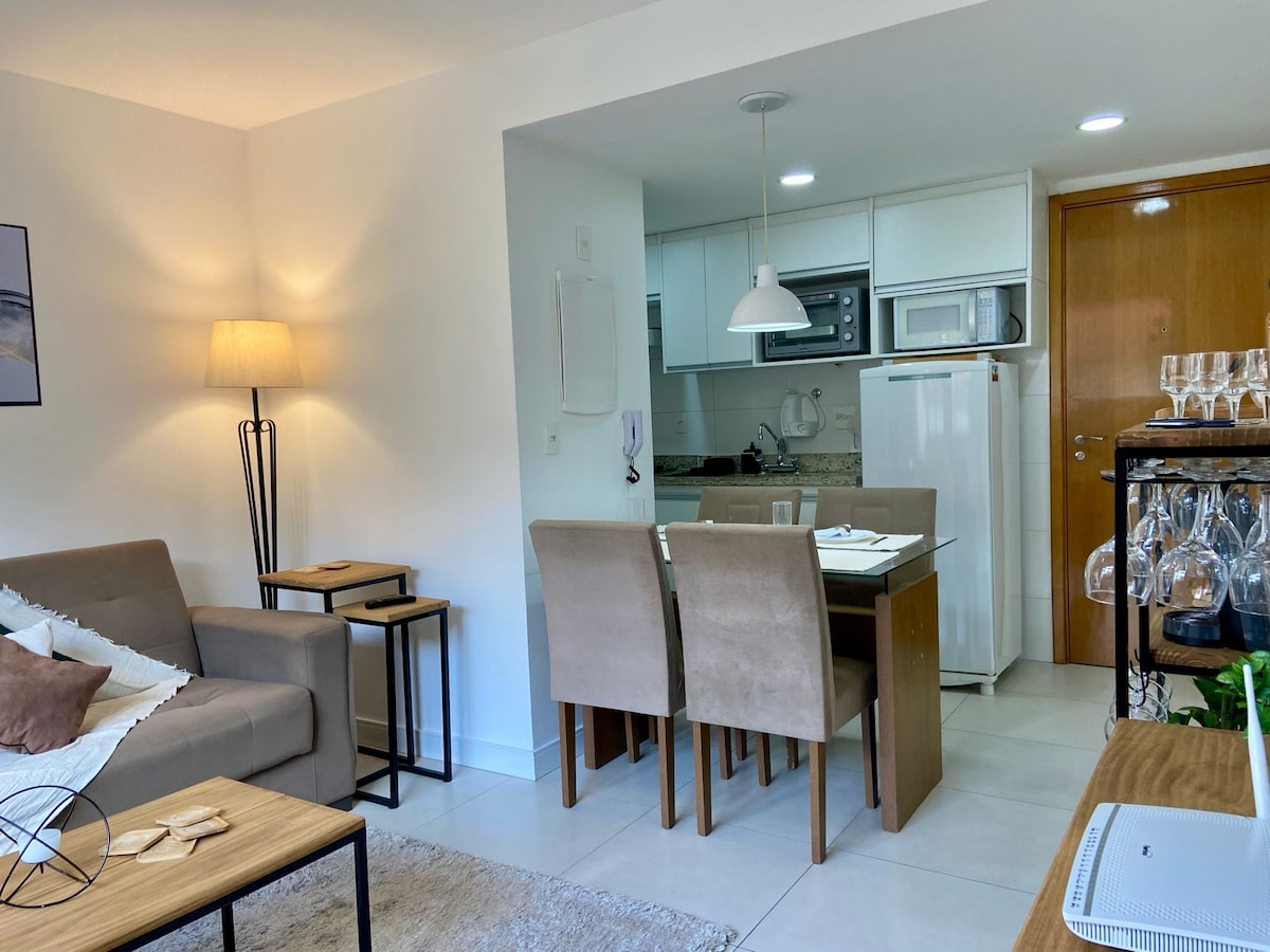 Desfrute de um ambiente calmo, aconchegante, confortável e cheio de estilo. Nosso apartamento de conceito aberto é perfeito para até 4 pessoas, proporcionando todo o conforto e praticidade para uma estadia relaxante. Localizado em um condomínio tranquilo e familiar, é o lugar ideal para quem quer passar um final de semana ou até mesmo uma semana inteira com tranquilidade. 🏳️🌈