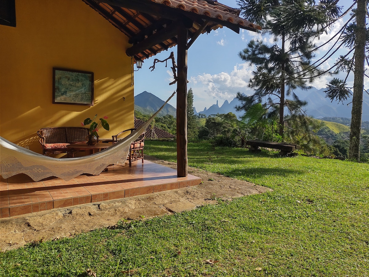 Sua casa na serra. Refúgio ideal tanto para os dias quentes de verão, quando as casas continuam frescas, quanto para o inverno, onde a lareira aquece e traz ainda mais aconchego. Situado nas redondezas do Parque Estadual dos Três Picos, em Teresópolis – RJ, o Sítio das Montanhas fica a apenas 15 minutos do centro da cidade. Casa independente, plana, cozinha pronta para preparar suas refeições, como se estivesse em casa. Sítio com piscina, circuito para caminhada, trilha na montanha, linda vista