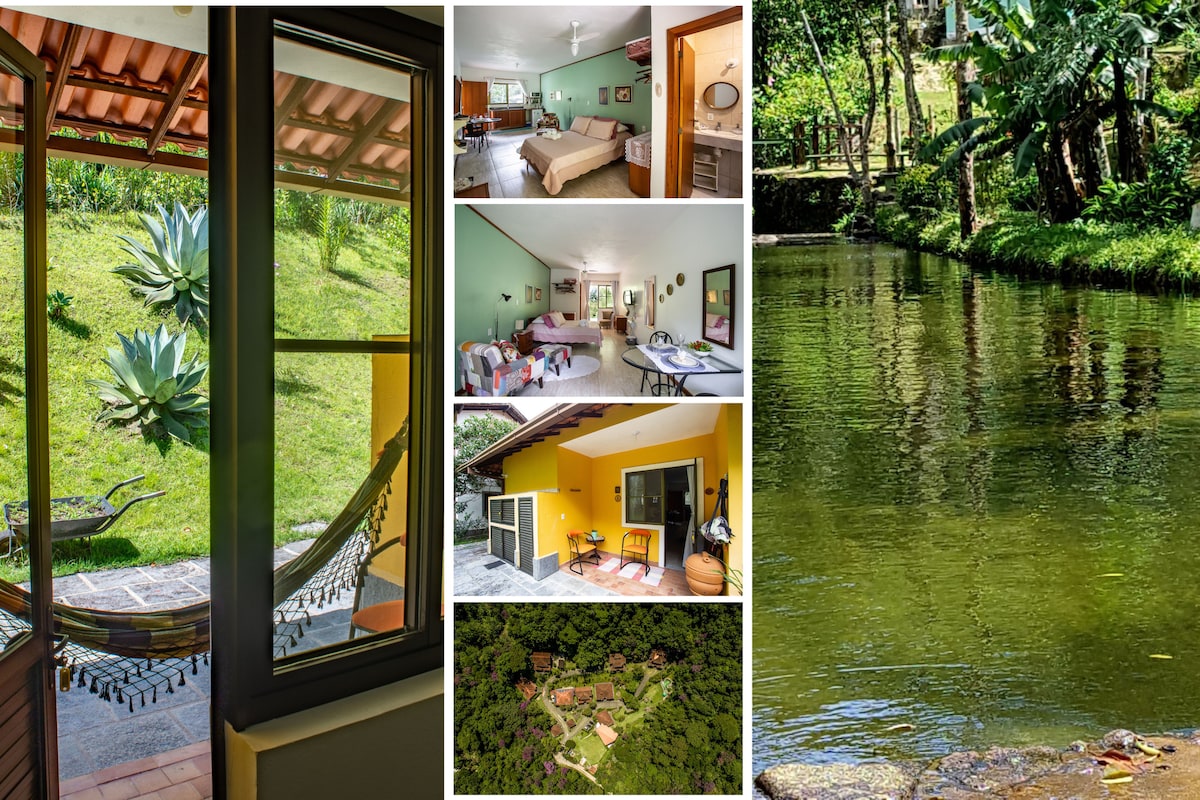Casa de hóspedes, tipo chalé independente da casa principal, aconchegante bem localizada junto ao Parque Nacional da Serra dos Órgãos. Cercada pela Natureza. De fácil acesso aos principais pontos turísticos de Therezópolis. Com lindo jardim, localizada na área mas nobre da cidade não é condomínio, uma casinha de hóspedes .