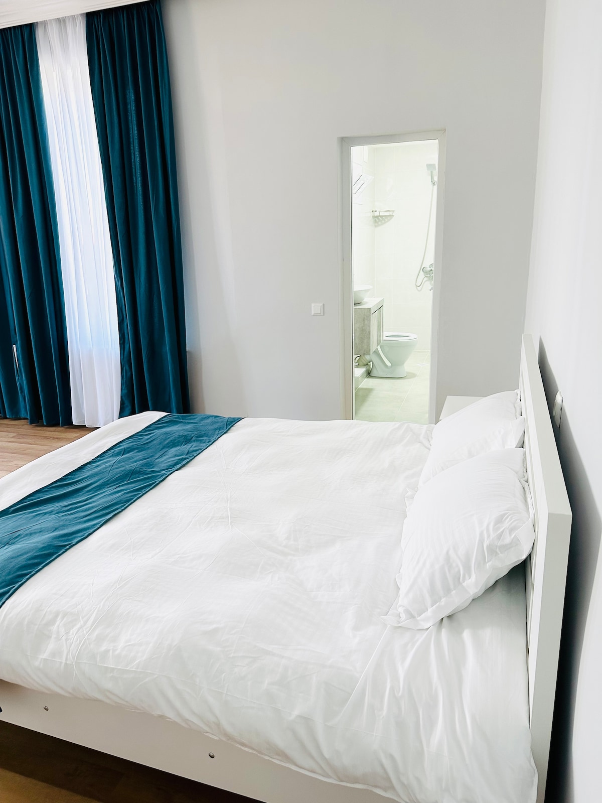 Our brand new apartment is located in a cosy environment at 4 Korkia Street (entrance from Tamar the Quees Street) in the very center of Kutaisi city. There are 2 bedrooms, 2 bathrooms, spacy living room with TV, kitchen, air-conditioning, heating and all necessary things that the guests might need. Our guests will feel a very comfortable atmosphere in our apartment which is located within a few minutes walking area from the main square, markets, restaurants, bars and bus stops.