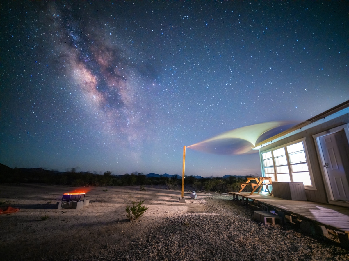 Reconnect with nature at this unforgettable escape. Fall asleep under the Milky Way in the largest dark sky reserve in the WORLD! Wake up to stunning mountain views. Solar-Powered Luxury Glamping Dome with spa-inspired interior bathroom, heating/air conditioning, shaded outdoor kitchen & dining area, touch-on fire pit & chaise lounges with a telescope for stargazing. ~30 Minutes from Big Bend National Park entrance. Enjoy the peace & quiet.