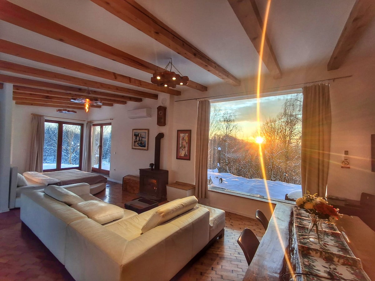 Experience ultimate relaxation in this charming wooden retreat nestled in Slovenia’s serene countryside. Crafted from solid wood with exquisite furnishings, the villa exudes natural elegance. Enjoy the warmth of your private fireplace, unwind in the large panoramic outdoor sauna, and soak in the outdoor hot tub—all in complete seclusion. Your dream getaway blends luxury, tranquility, and romance. Explore local delights and embark on adventures. Let this enchanting hideaway reignite your bond.