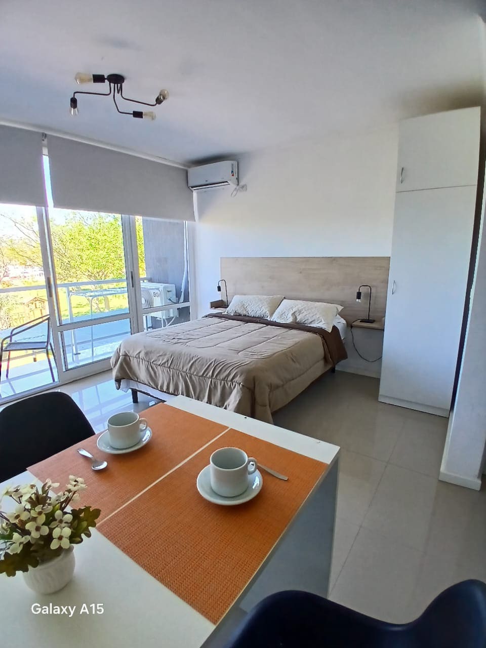 Hermoso departamento a estrenar. Ideal para descansar en familia a solo 1,3 Km de las termas. El departamento cuenta con una habitación con cama matrimonial queen, baño completo, y un hermoso patio para relajarse y disfrutar con parrilla independiente. El departamento se encuentra en un predio cerrado con pileta compartida (FRIA) y cochera independiente. Se entrega con ropa de cama y toallones. No incluye toallones para pileta o termas.
