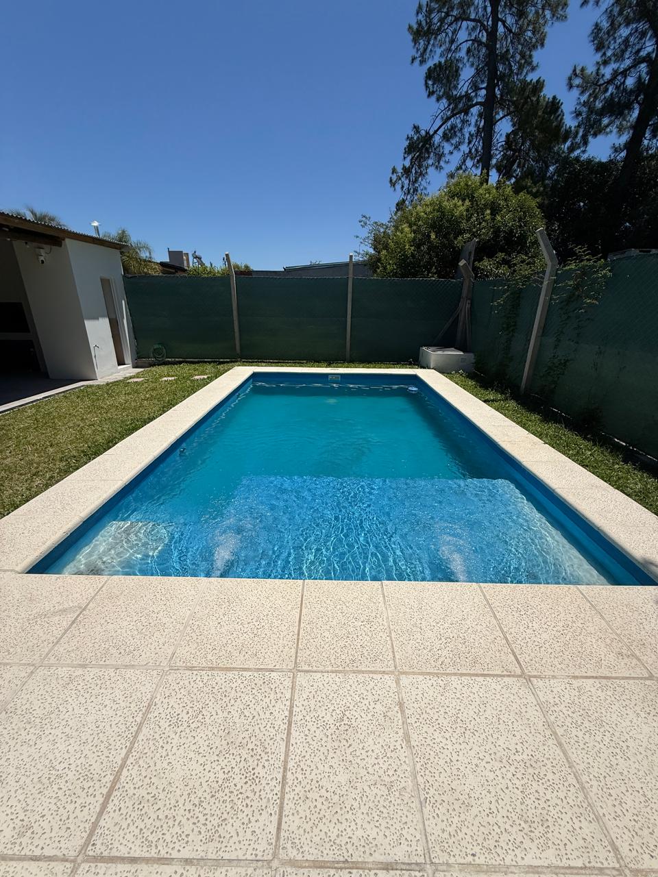 Amplia casa en Barrio Jardines de termas Daymán. Lugar tranquilo para disfrutar en familia. Espacios verdes con jardines, pérgolas, juegos de jardín(mesas, sillas, reposeras, sillones) Piscina de agua fría,de 8m de diámetro con ducha (se habilita a partir de noviembre a abril) con 3 dormitorios definidos con AC. 2 con camas de 2 plazas,otro con 2 de 1 plaza;más 2 marinera. Amplio living-comedor integrado a cocina con AC 2 baños Cámaras de seguridad en Exteriores Wifi TV cable Garage UTE aparte