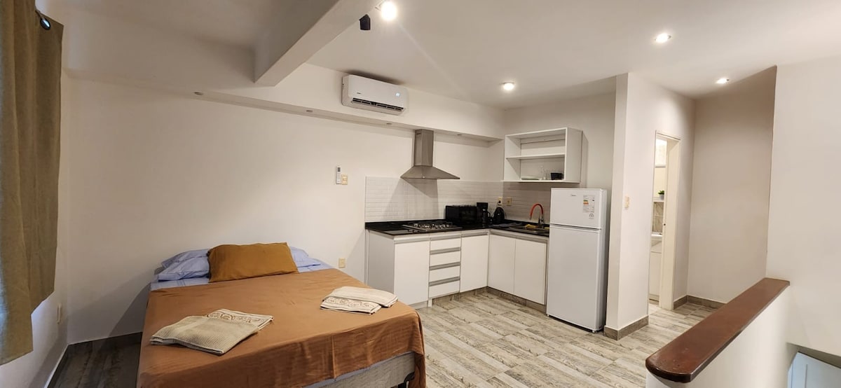Vas a encontrar un amplio y luminoso monoambiente cerca del centro de concordia. Queda a 6 cuadras de la peatonal y la zona comercial. A solo 3 cuadras de la costanera. Monoambiente amplio con cocina separada y totalmente equipada, baño completo, amplio balcón a la calle, aire acondicionado frío/calor, wifi, tv por cable y todo lo necesario para que tengas una estadía cómoda y placentera. Supermercados, kioscos, restaurantes, bares, etc. en las inmediaciones.