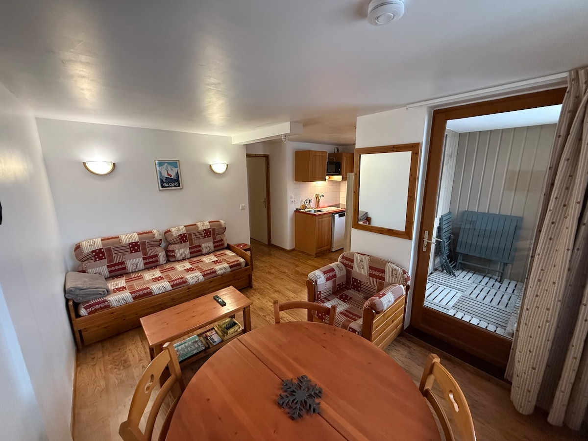 Studio cabine refait à neuf de 17m2, idéal 2 personnes, mais peut accueillir 4 personnes Il dispose de 4 couchages, un canapé lit double dans le salon, et 2 lits escamotables dans l'entrée A 2min à pieds des remontées mécaniques(150m) et proche de tous commerces, un arrêt des navettes gratuite est juste en bas de la résidence L'appartement dispose d'un lave vaisselle, cafetière, grille pain et bouilloire, ainsi que d'un casier à ski Les draps, serviettes et le ménage sont compris Wifi gratuit