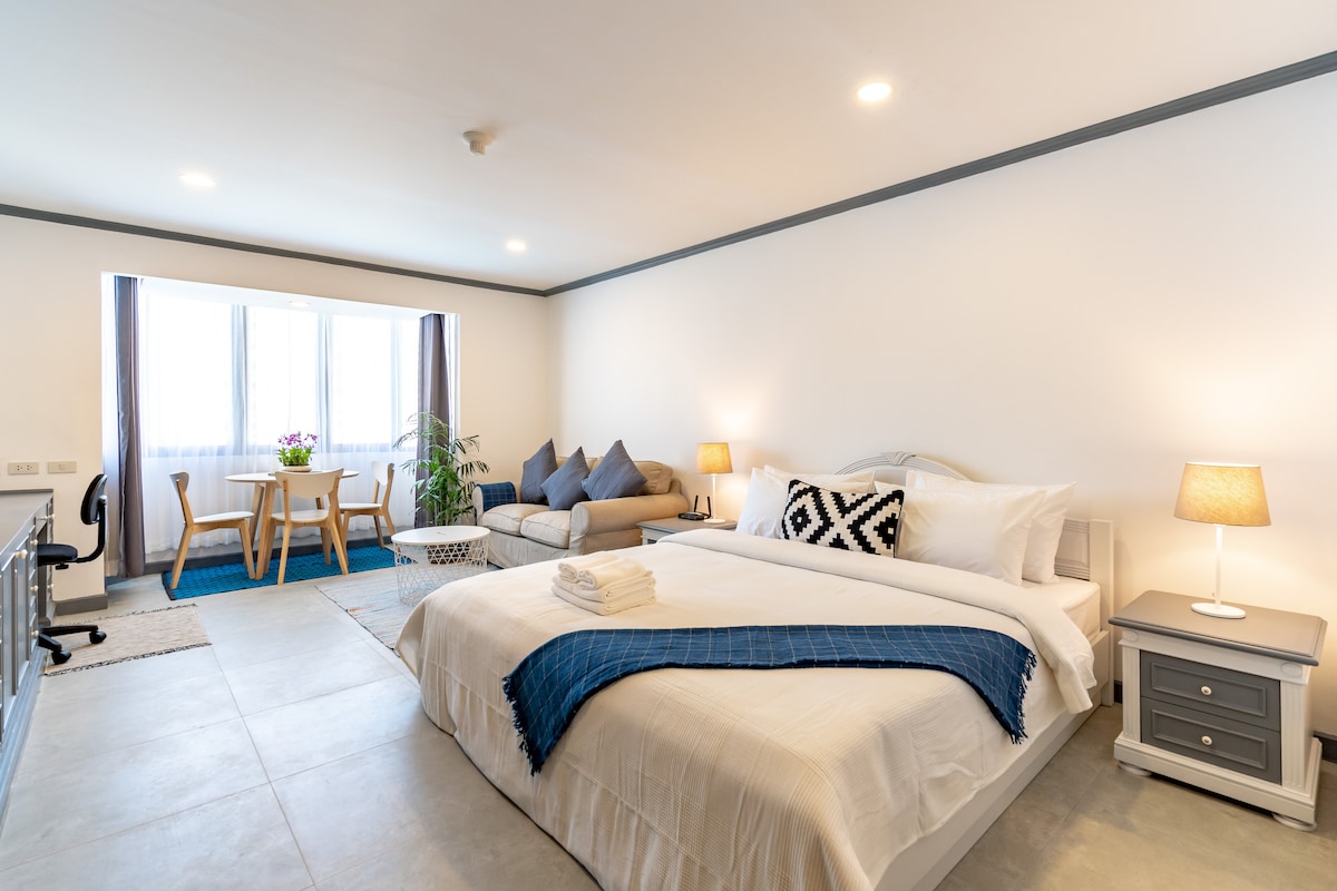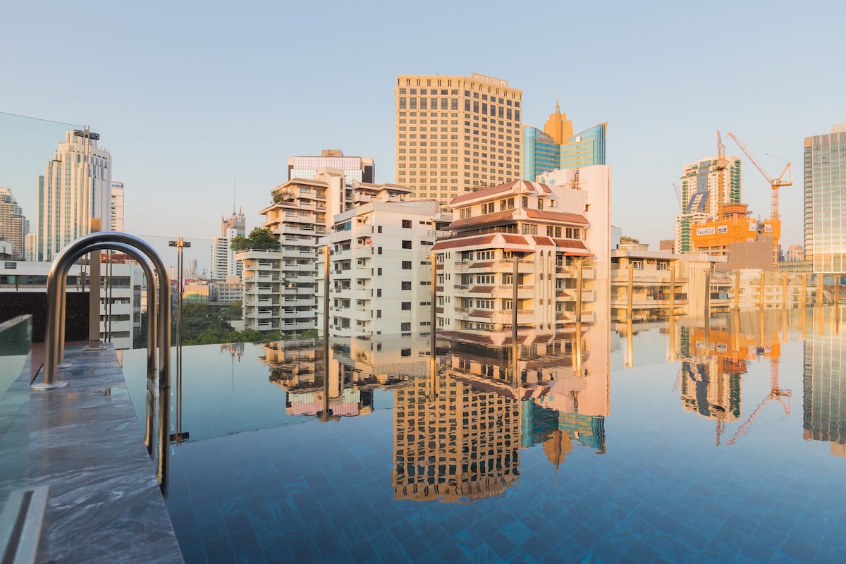 市中心Asok素坤逸步行5分钟高级公寓套房!四面佛10分钟直达!免费无边泳池健身房wifi