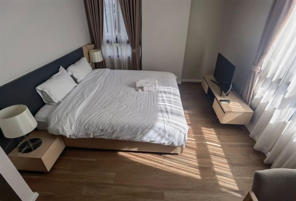 全室消毒,请您放心。 这间公寓是坐落于素坤逸(Sukhumvit)31巷的精致两室套房,最多可容纳5人入住。这间公寓所处的位置也十分便利,徒步15分内就可到达BTS Asoke站,BTS Phrom Phong站及MRT Sukhumvit站,可轻松简单到达市内任何您想要去的地点, 而且每个站附近都有便利设施和餐厅。百货商场包括Terminal21 \Emquatier,Benjasiri 公园、米其林餐厅、Big C超市也是步行可达的距离。不管长期短缺逗留都很方便。如果您想知道更多房子的详情,我随时在线可以解答您的疑问。这里是您来曼谷旅行,度假的最佳选择。