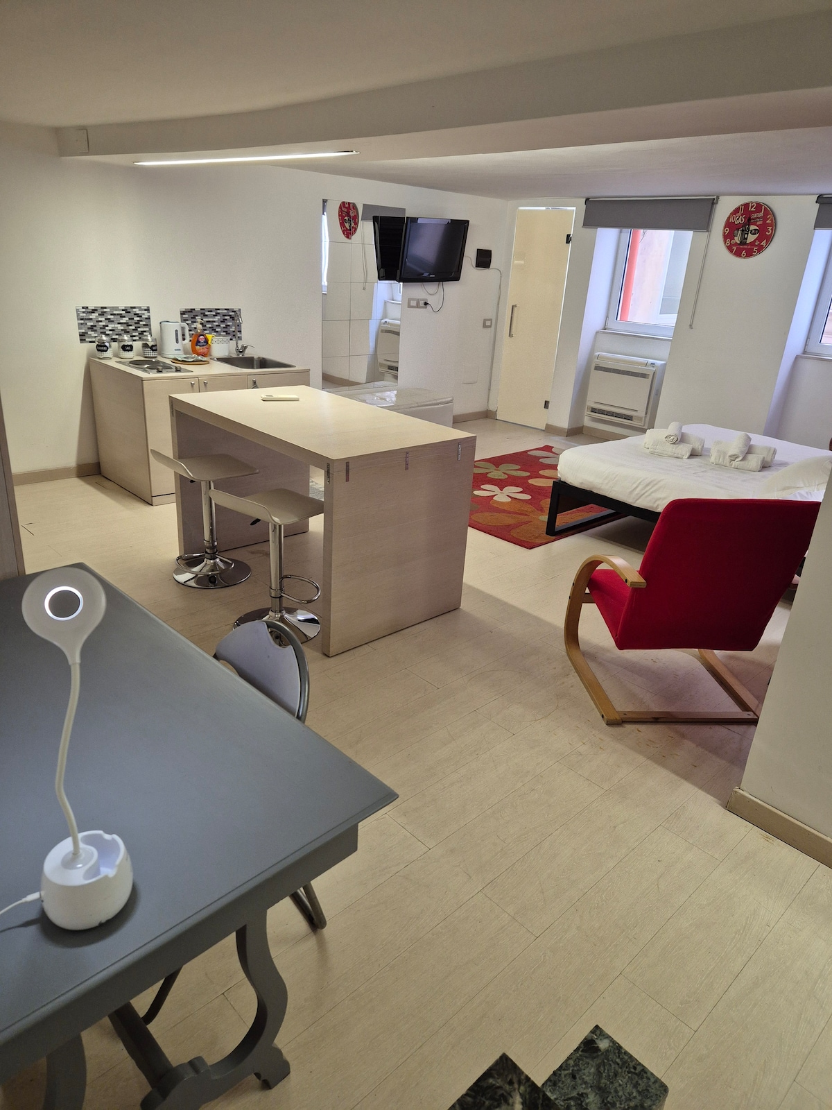 Elegant Loft in the city centre, recently renovated, can hosts up to 5 person in as unique and luminous space, with high roofs, and big windows. This Unique Loft has 2 floors, a big spacious and comfortable bathroom, with a huge shower, a luminous living room, complete kitchen, fridge, AC, washing machine, Nespresso coffe machine, toaster, boiler, HD TV smart, Wi-Fi, walk-in closet, and a beautiful pretty balcony with view on the old town.