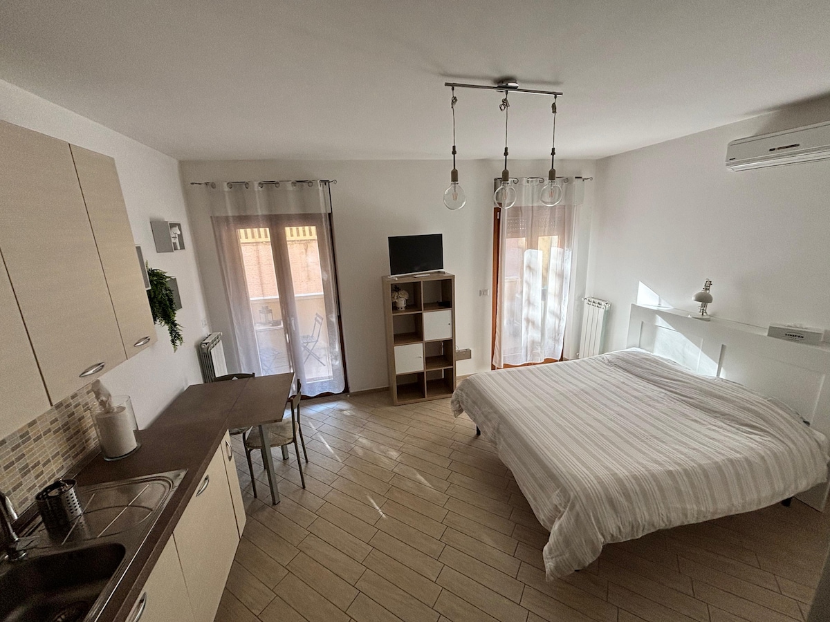 Independent flat in the heart of Ortona with double bed, private bathroom, living room, sea-view terraces and free parking. Only two minutes walking to Basilica di San Tommaso, Castello Aragonese, Passeggiata Orientale, Corso Vittorio Emanuele, Teatro Vittoria, pedestrian bicycle path on Costa dei Trabocchi. In few minutes you can get to the best beaches Lido Riccio,Lido Saraceni, natural shore Ripari di Giobbe and Acquabella, Cimitero Canadese, the Harbor of the city and the turistic pier.