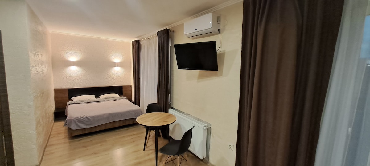 ДО БРОНЮВАННЯ Є ДОСТУПНІ Й ІНШІ ВАРІАНТИ АПАРТАМЕНТІВ У СХОЖОМУ СТИЛІ. ЗАПИТУЙТЕ :) Світла та затишна студія з панорамою на центральний стадіон та місто.