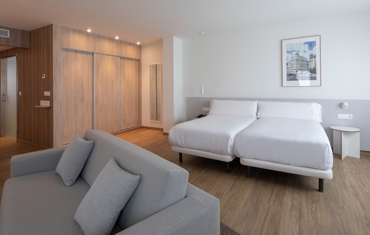 Apartamento recién reformado a menos de 100 metros del centro. Cuenta con una habitación, salón comedor, baño y cocina independiente completamente equipada. Además de la cama de la habitación principal tiene un sofá cama en el que alojar cómodamente a dos personas más. En la zona hay todos los servicios; restaurantes, droguería, supermercado, parking y zona comercial en el centro.