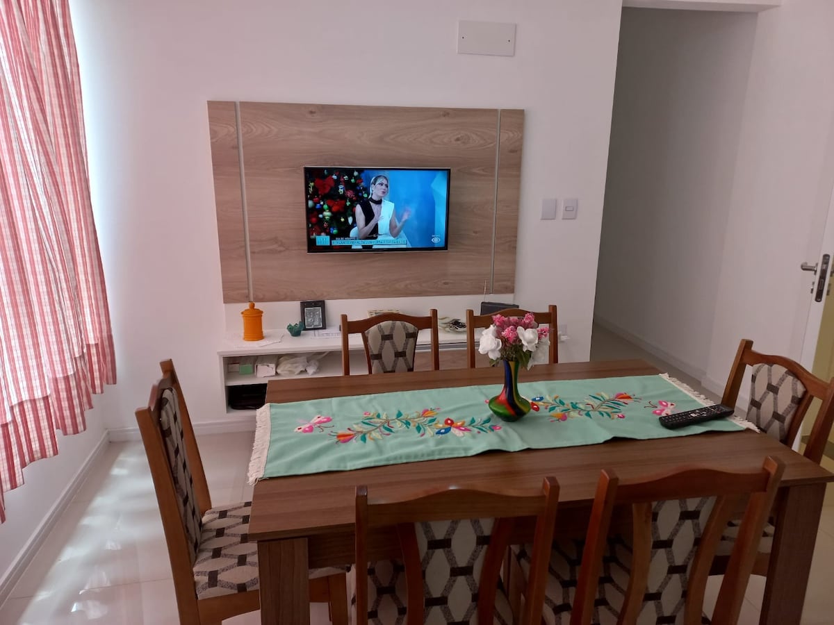 "Lindo e amplo apartamento, todo mobiliado, a 60 metros do mar, todos os móveis novos. Muito bem localizado - próximo ao comércio, supermercado e farmácia. Não aceitamos nenhum tipo de animal de estimação."