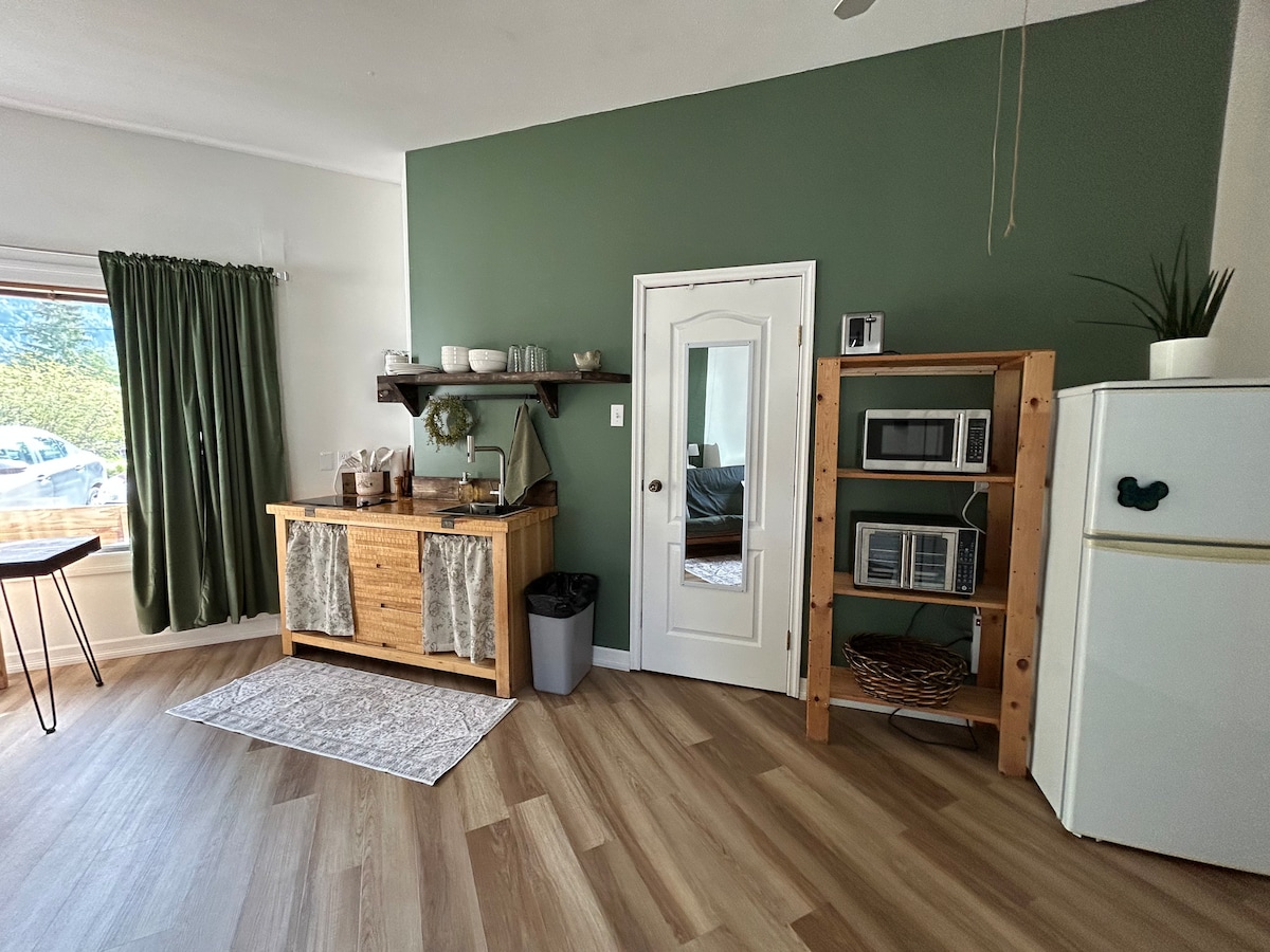 Newly renovated modern, clean and cozy fully separate suite. In suite laundry, kitchenette and fridge make this space cooking friendly. King size bed in bedroom plus comfortable queen size sofa bed in living room! Bag drop is available on same day check-in or same day check-out of your stay... just incase you get into town early or want to stay a little later to explore all that terrace and area has to offer. There is also a secured place to keep bikes or ski equipment if needed.