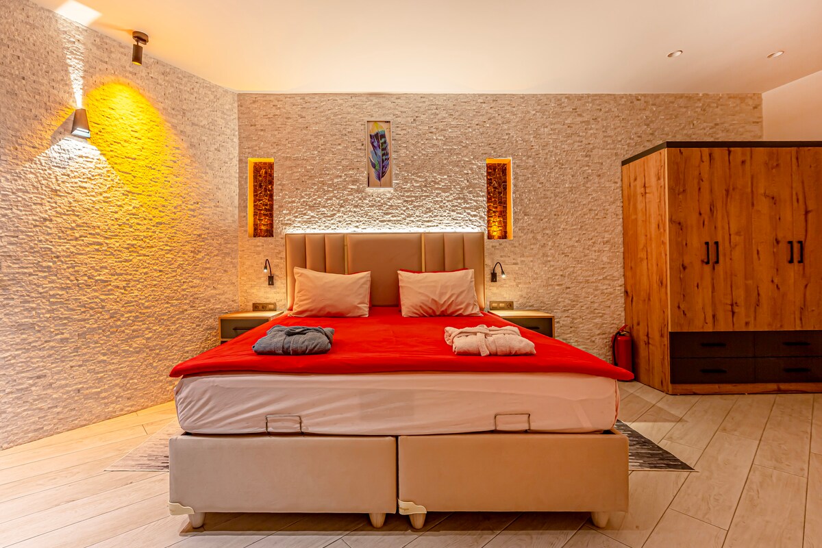 Each suite offers a spacious layout with two rooms, each featuring two double beds and two bathrooms. Enjoy sophisticated decor and top-notch facilities, including special tea and coffee machines, versatile toast and grill machines, and washing machines. Stay entertained with flat-screen TVs and high-speed internet. We add personal touches for a comfortable stay. Airport transfers to and from LOS Suites are also available.
