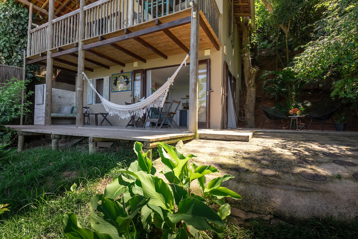 A nossa casinha foi pensada com muito carinho para trazer o máximo de conforto aos nossos hóspedes, desde uma jacuzzi incrível super privativa no deck da sua suite, enxoval inteiro de 400 fios a uma internet excelente de 200 Mb em fibra ótica para quem está de homeoffice. Nossa Vila tem 2.200 m² com lindas árvores que proporcionam um espetáculo a parte. Temos visitas diárias de 3 espécies de macacos, diversos pássaros e até bichos preguiça. :) Estamos a 2km do Quadrado e 3 km da praia + próxima
