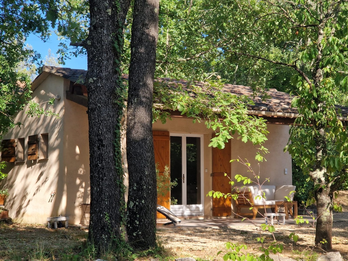 Deux-pièces à louer en Provence, dans un lieu paisible, pour des vacances agréables. Nous proposons à la location un deux-pièces de 33m², indépendant et mitoyen à notre maison. Il peut accueillir deux voyageurs. Notre propriété se situe au bout d’un chemin privatif et vous bénéficiez d'un parking. Un espace jardin est mis à votre disposition avec un salon de jardin et des transats. Le logement est climatisé.