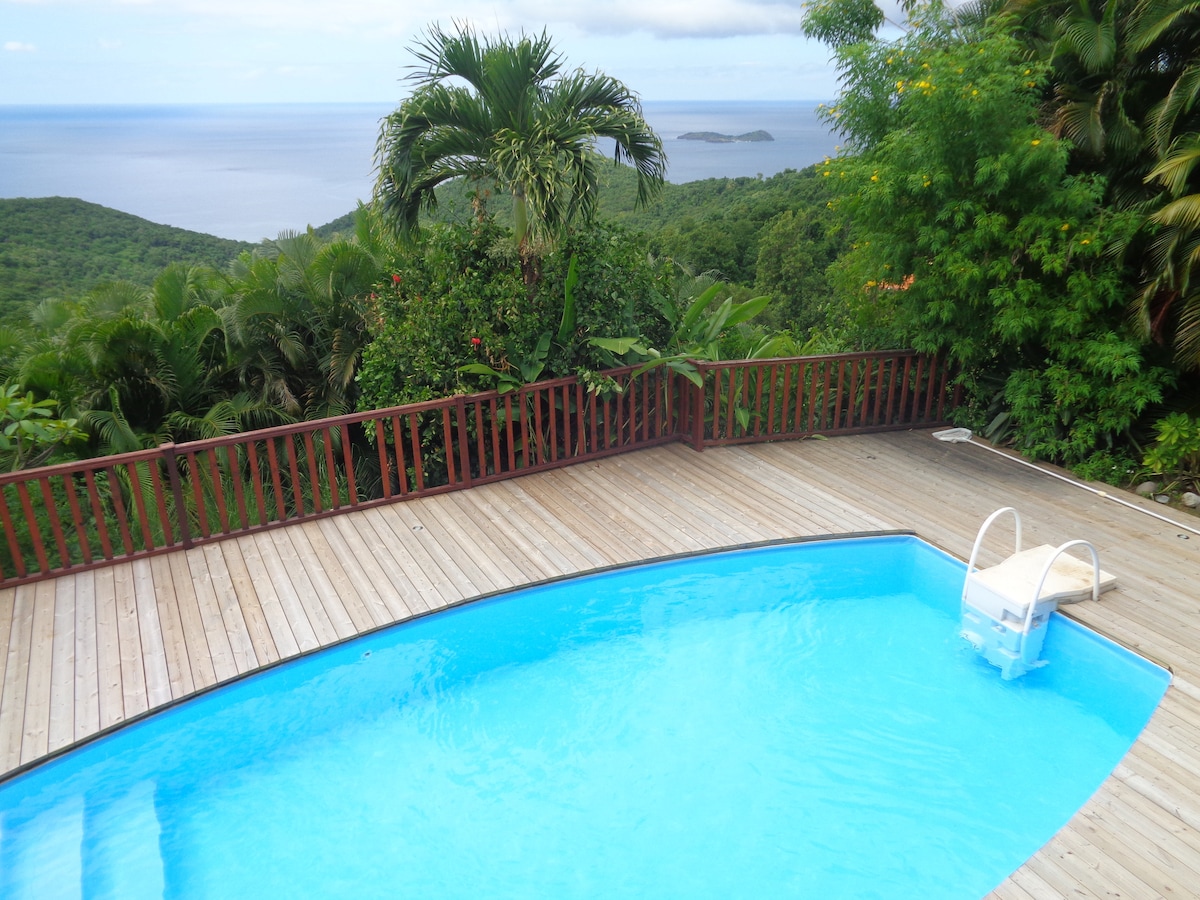 La villa Tropicale, piscine et vue sur mer