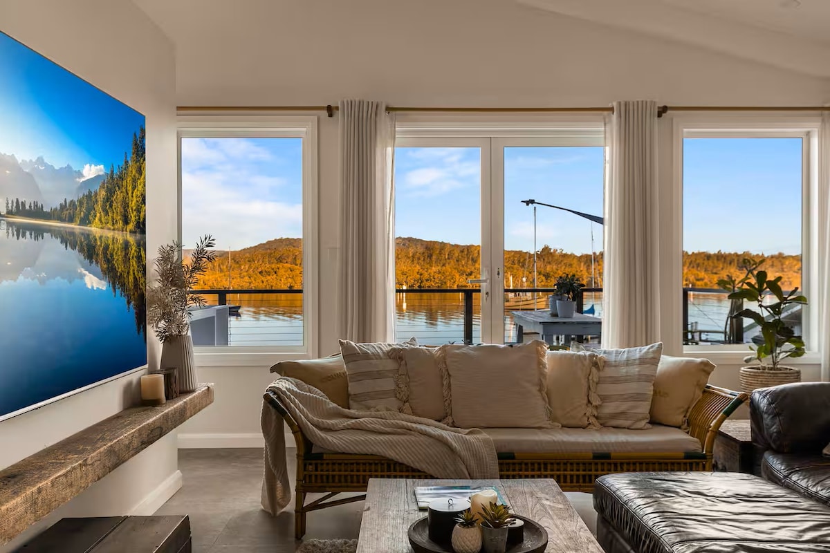 NSW Government PID-STRA-3442 Watersedge Boathouse is a beautiful, private, open plan boathouse/studio, just 3 metres from the water's edge. It is fully self-contained with own entrance and uninterrupted 180 degree views. Situated on the western shore of Lake Macquarie. Tastefully decorated and generously equipped. Country-style breakfast provisions provided for your first two mornings, to cook at your leisure.