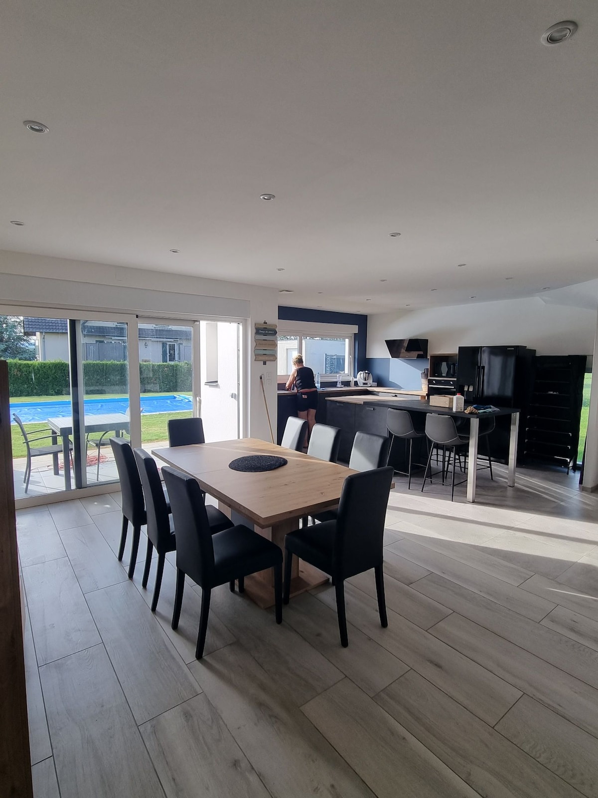 Grande maison dans village calme avec piscine chauffée entre 28 et 30 degrés (juin à fin août) accessible 24h/24 Jaccuzzi et barbecue disponible sur demande (gratuitement) L'étage RIEN QUE POUR VOUS : -Chambre de 15m2 avec lit 160cm (matelas Emma haute gamme) et armoire. -sdb/wc avec douche italienne -Bureau avec matelas au sol pour 1 invité (15e/nuit)