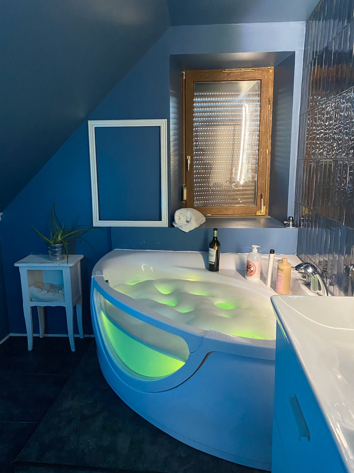 Plongez dans une expérience immersive unique avec cet appartement à thème Jungle. Entre plafond végétal, déco exotique, miroir vintage et ambiance chaleureuse, chaque détail invite à la détente et à la romance. Profitez d’une baignoire balnéo apaisante et d’un salon enveloppé de fresques tropicales. Un refuge urbain mêlant confort moderne, charme sauvage et atmosphère love room, parfait pour un séjour inoubliable.