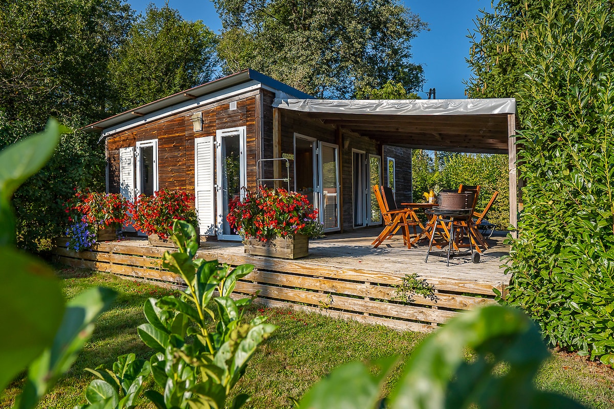 Lodge niché dans un écrin de nature pour vous assurer détente et tranquillité. Conçu avec des matériaux de qualité dans le style scandinave , il est entièrement équipé pour votre plus grand confort. Deux grandes baies vitrées vous offrent une vue imprenable sur l'étang et la nature environnante: une immersion au cœur de la faune et flore locale pour un séjour totalement dépaysant.
