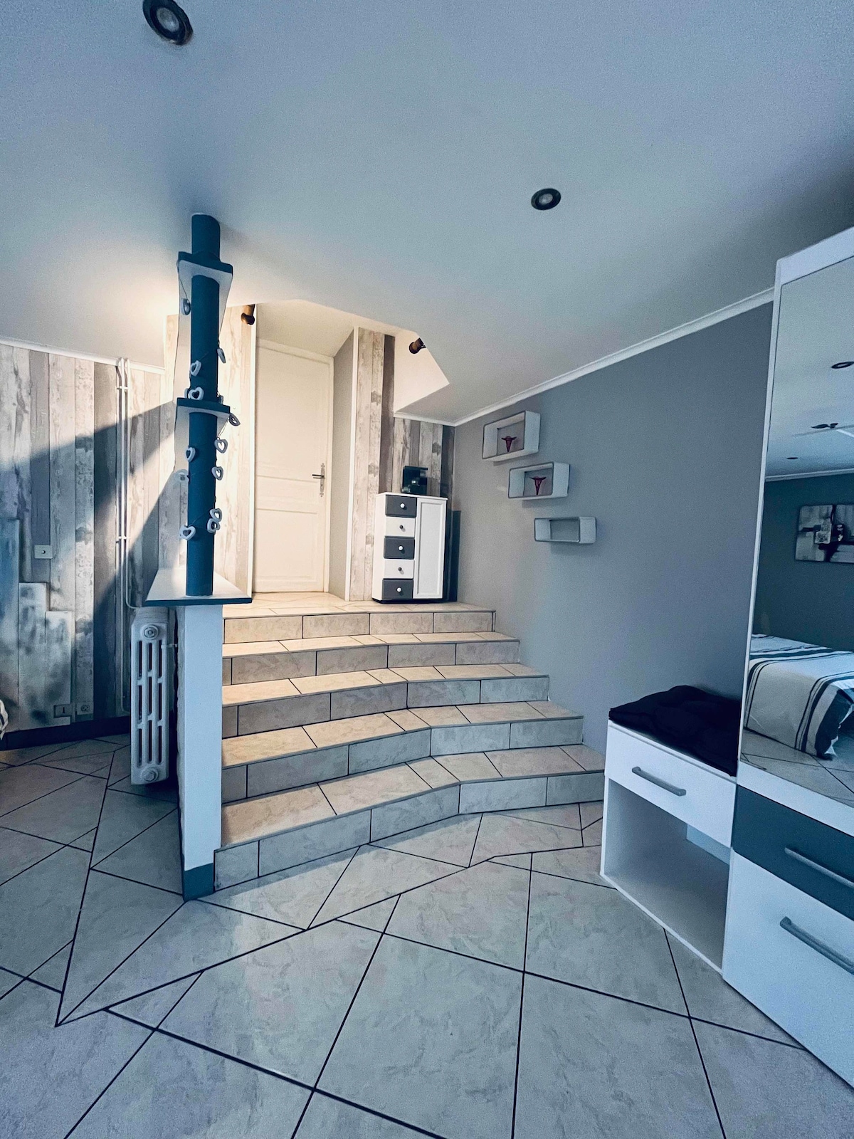 Découvrez ce studio atypique, idéal pour un séjour à deux ou en solo, situé dans une petite copropriété calme à Bavilliers. Profitez d’un environnement paisible, tout en étant à seulement 5 min en voiture du centre historique de Belfort. De nombreuses places de parking gratuites sont disponibles dans la rue, facilitant votre arrivée. Que vous soyez en déplacement professionnel, en week-end découverte ou en pause nature, ce studio vous offrira confort et tranquillité.