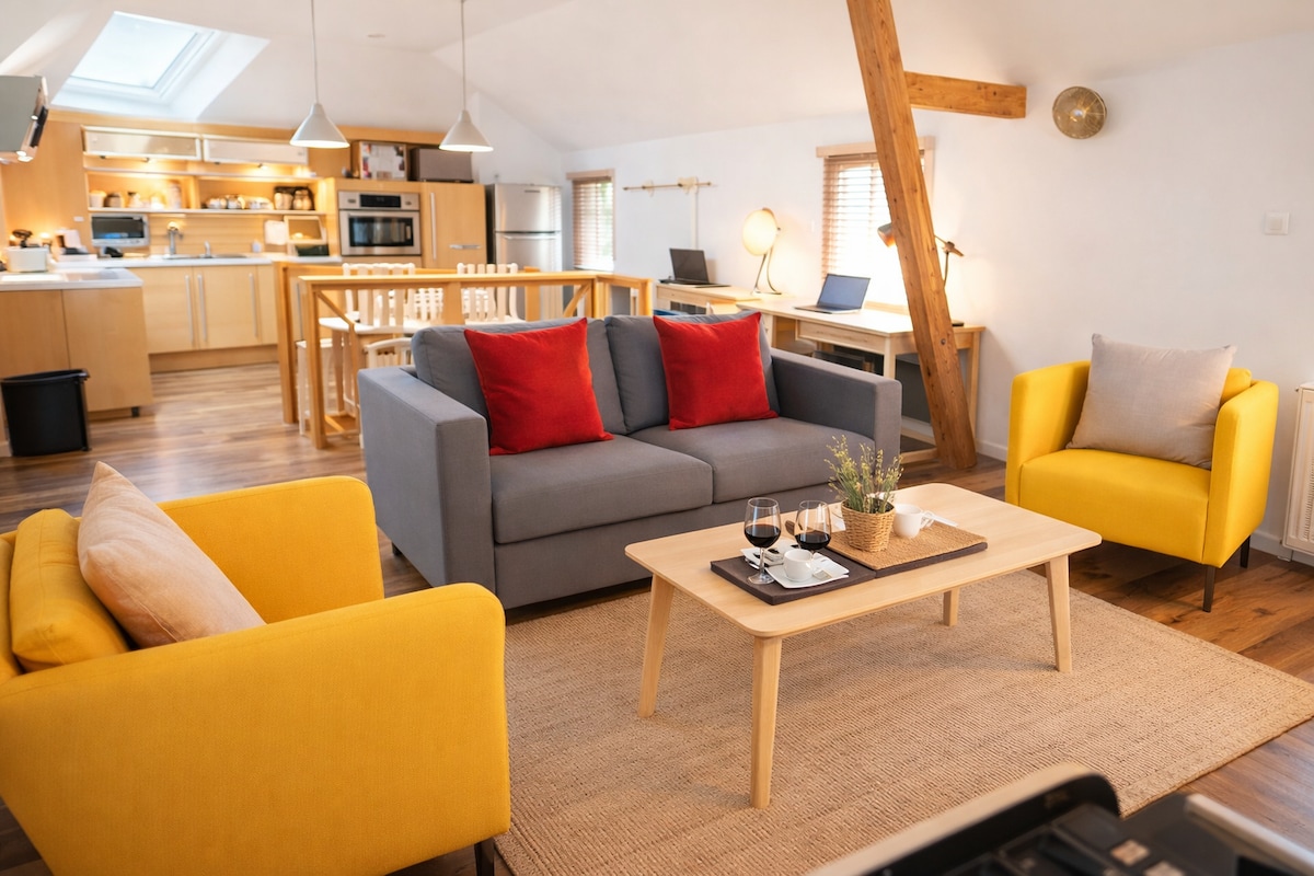 Half-timbered 82 m² townhouse with two bedrooms, one featuring a queen-size bed and smart TV. Bright living room with workspace, high-speed fiber, 55’’ TV with Netflix and Marshall Bluetooth speaker. Fully equipped modern kitchen including a raclette set for convivial dinners. Quality bedding, self check-in and convenient location make it ideal for business trips, family holidays or getaways with friends in Belfort.