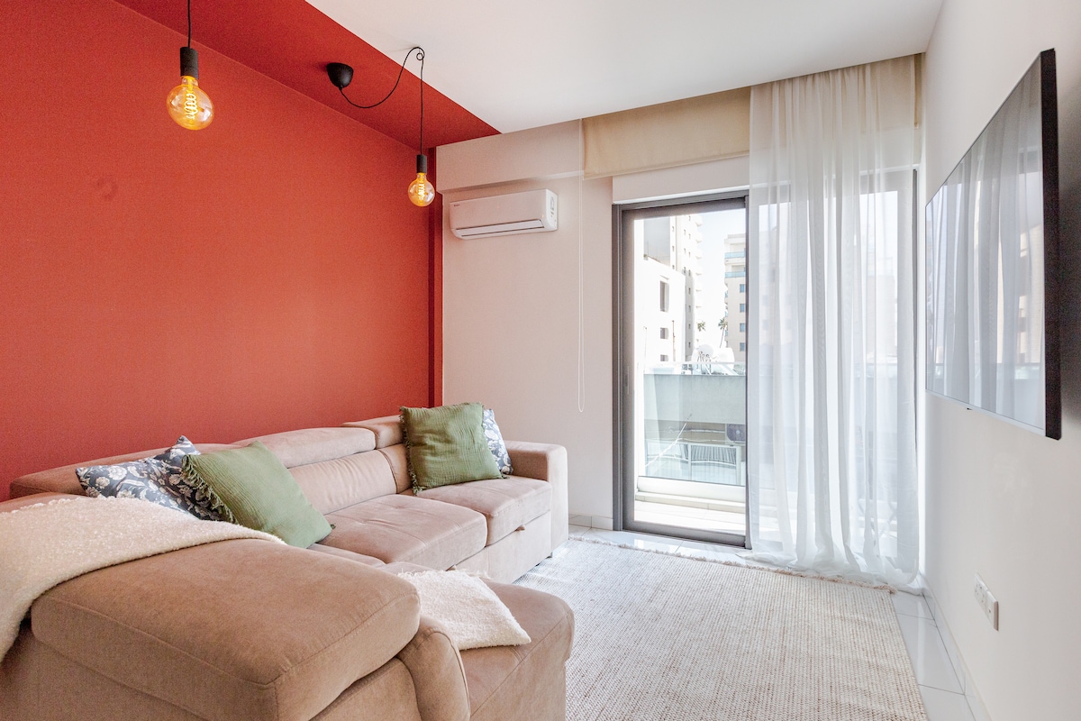 3 MIN WALK TO THE BEACH! One of our most popular flats, 150m from Finikoudes. Total bathroom renovation, as well as all windows replacement in June 24. Close to cafes and restaurants. Bus stop outside the building for Larnaca, the airport, or other towns. Great for couples, solo adventurers, and business travelers. Recently renovated bathroom and new windows, stylish contemporary furniture & appliances. Free unlimited 200/20Mbps wifi & cable TV. To see more flats of ours, go to our profile.