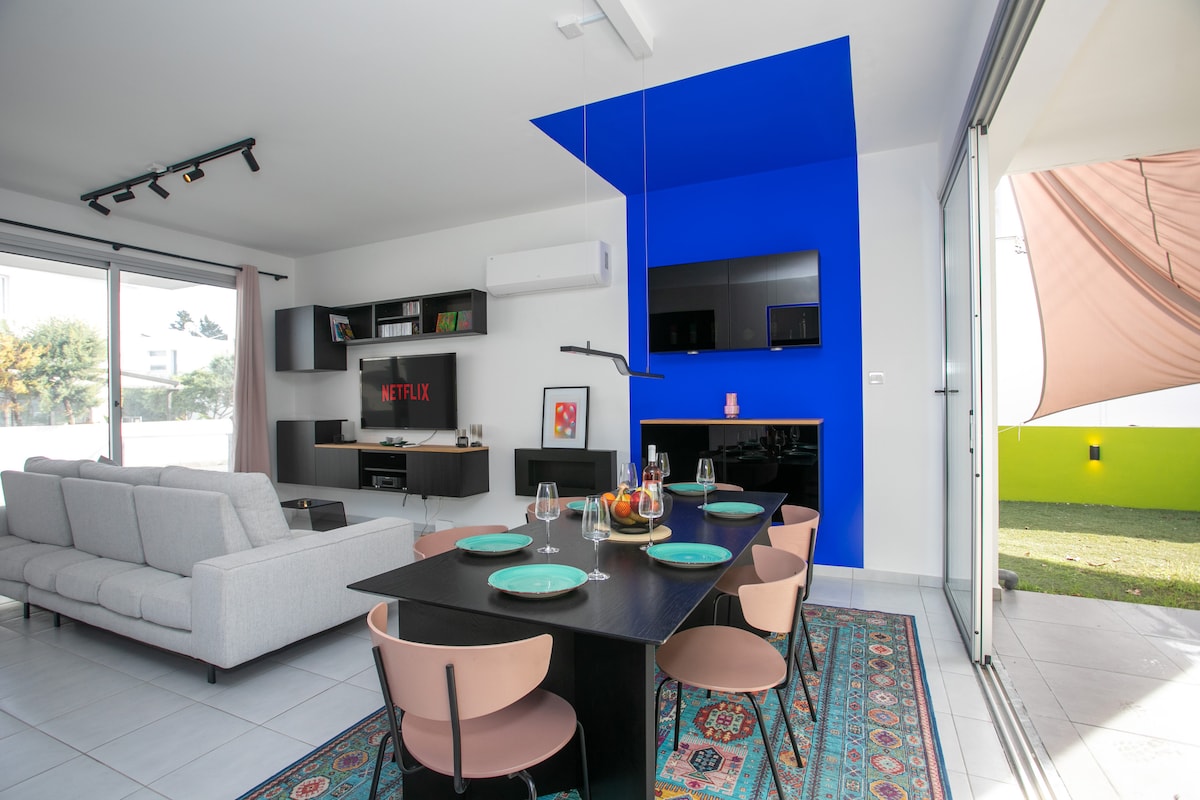 Welcome to our stylish, brand new 2-bedroom apartment in Larnaca’s safest and most vibrant neighbourhood. Enjoy modern bedrooms with queen-sized beds, a bright living area, and a fully-equipped kitchen. Relax on the private balcony with beautiful views. Featuring sleek bathrooms, free Wi-Fi, air conditioning, and secure free parking. Just minutes from top attractions, dining, shopping, and beaches, our apartment is your perfect home base. Book now for a luxurious and comfortable stay!