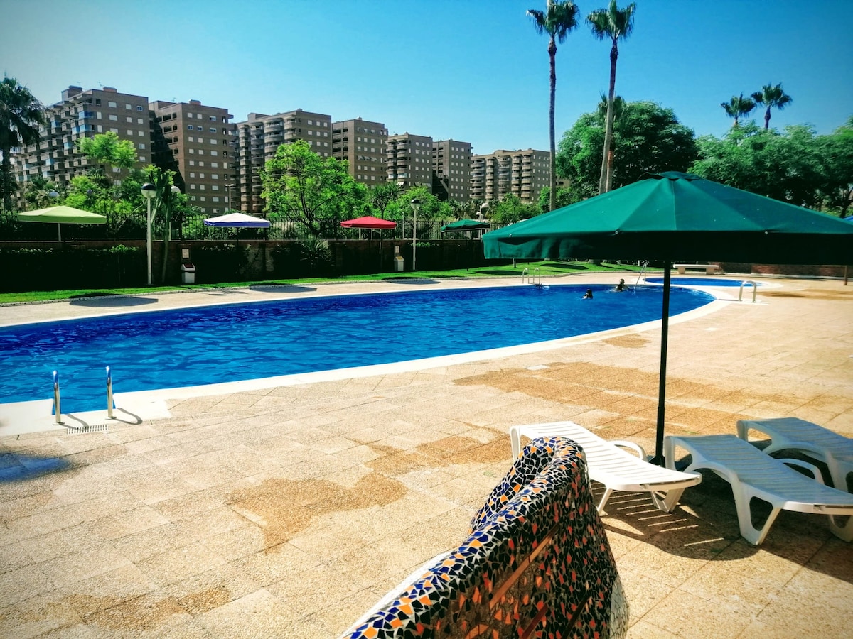 En este alojamiento se respira tranquilidad: ¡relájate con toda la familia! Apartamento amplio y luminoso, situado en paseo peatonal frente al Pinar del Grao de Castellón con amplias zonas de juegos infantiles, paelleros y piscina municipal, a escasos 3min andando de la playa, del Planetario y Centro deportivo. Muy bien comunicado con la ciudad de Castellón vía tranvía y con Benicassim vía Bus. Mercadona a 1min. Zona de ocio y restauración y puerto náutico a 5min a pie. Parking Privado incluido.