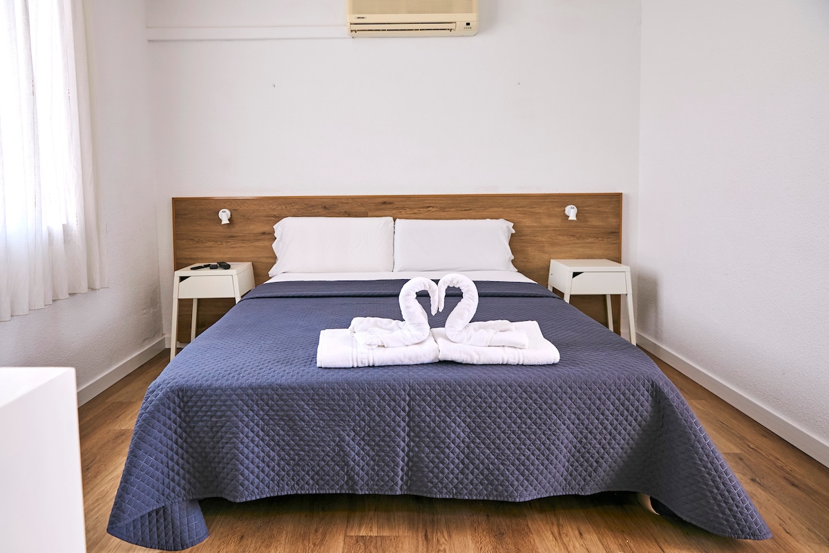 👉 Habitación doble cómoda y funcional 👉 Ideal para 1 o 2 huéspedes 👉 Ambiente tranquilo y bien cuidado 👉 Perfecta para estancias cortas o medias La habitación está pensada para el descanso y el confort, incluye: 🛌 Cama doble cómoda de 1,50m ❄️ Aire acondicionado y calefacción 📶 Wi-Fi de alta velocidad 📺 Smart TV 55" 🧺 Ropa de cama y toallas 🔐 Espacio de almacenaje
