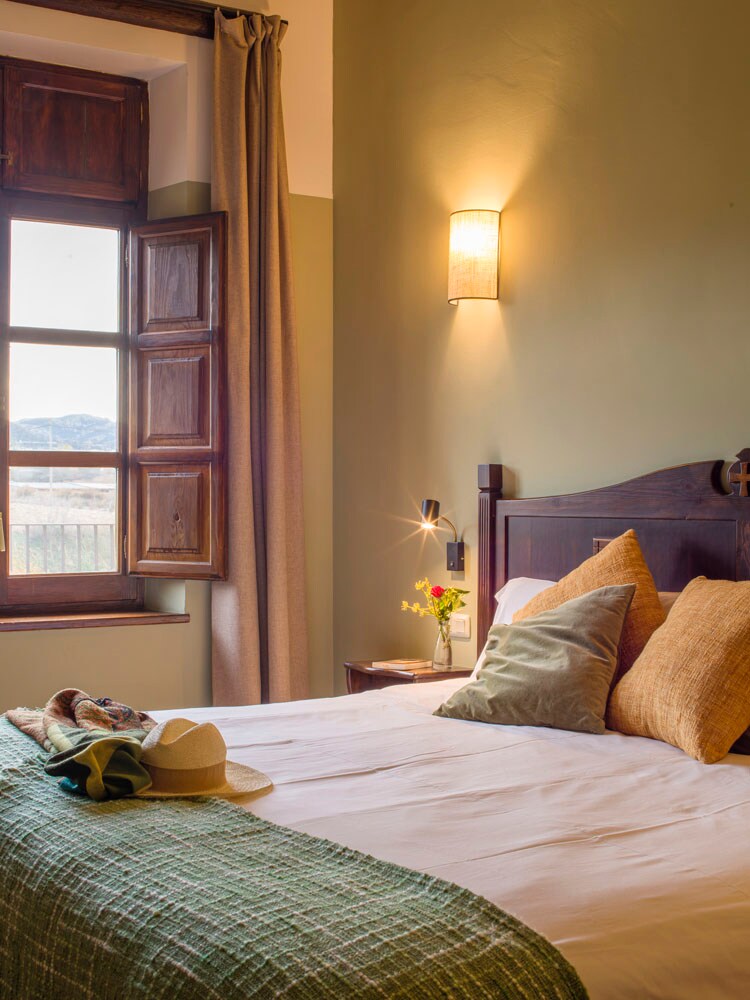 Descubre un lugar donde convergen historia y naturaleza. ¿Quieres cruzar el mismo umbral que traspasaron viajeros durante siglos mientras recorrían antiguas rutas de peregrinación? Dos ermitas del siglo XIV y XVII, un claustro porticado, jardines, el río.... y sus cinco habitaciones dobles, salón para huéspedes con chimenea y juegos de mesa, bar-cafetería y restaurante. Free parking. Ubicación ideal para conocer los pueblos pintorescos de la Comarca del Matarraña, rutas en bici y senderismo...