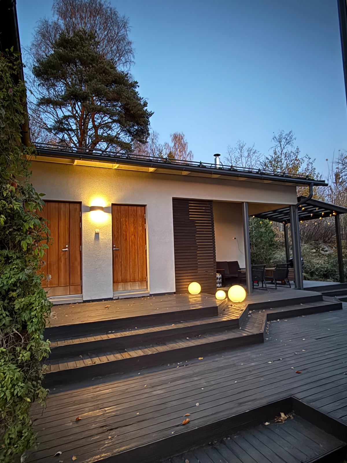 The beautiful scenery of the national park opens up in every direction from the windows of the house. Outdoor trails start right from the front door! Relax in the gentle steam of a traditional Finnish sauna, and soak in a hot tub under the starry sky (new clean water for every guest - also in winter). Children will enjoy the large yard with a playhouse, trampoline, swing and yard toys. The villa is located 39 kilometers from Helsinki Airport and 36 kilometers from the center of Helsinki.
