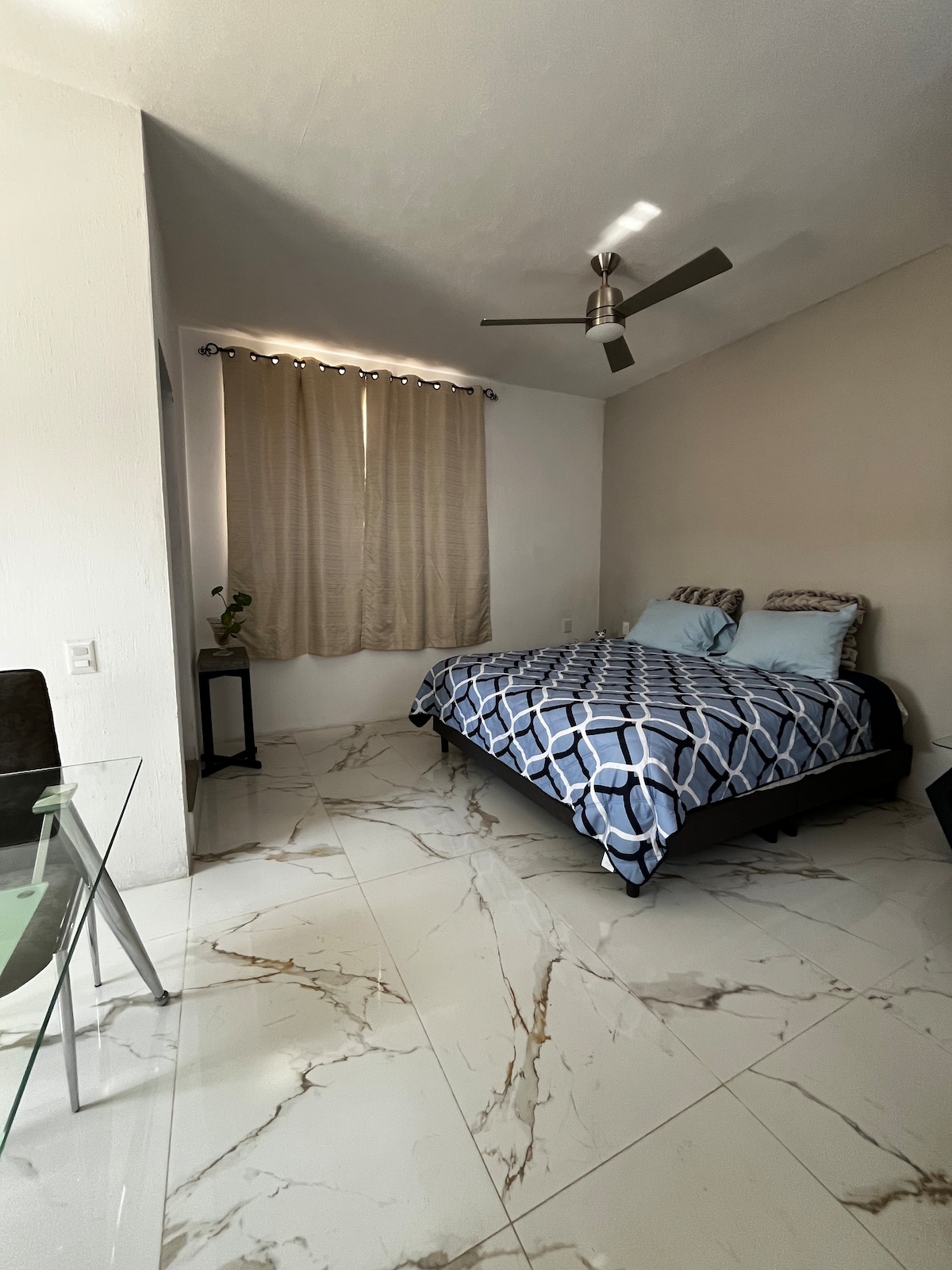 Departamento tipo Loft pequeño con todo lo necesario para una estancia placentera -Cocina Privada con Parrilla, Refri, Micro, Utensilios; ahorra y haz tu super -Baño Privado pequeño y espacioso -Escritorio Amplio y Wifi Veloz, trabaja desde aquí -Cama Matrimonial, descansa y ve la Smart Tv en un colchón confortable -Espacio Suficiente, guarda ropa doblada o colgada -Ventanas Amplias, gran iluminación y ventilación Gran Ubicación para Turismo, Viaje de Trabajo, Estudiantes o Salida en pareja
