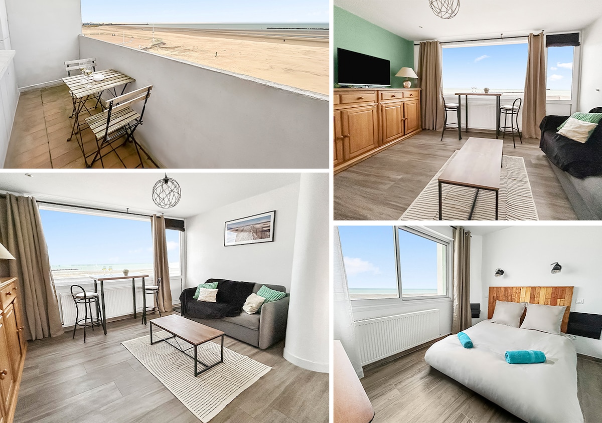 "Escapade Malouine" Bel appartement de 45 m² situé sur la plage de Malo les Bains au 2ème étage avec ascenseur d'une résidence calme de standing Vue imprenable sur la mer et accès direct à la plage Très lumineux, meublé et équipé pour 4 personnes : • Cuisine équipée (réfrigérateur-congélateur, micro-ondes, four, plaques vitrocéramiques, cafetière, bouilloire, grille-pain ) • 1 lit double • 1 canapé lit • Fibre optique • Lave linge • Baby Friendly Parking gratuit au pied de la résidence
