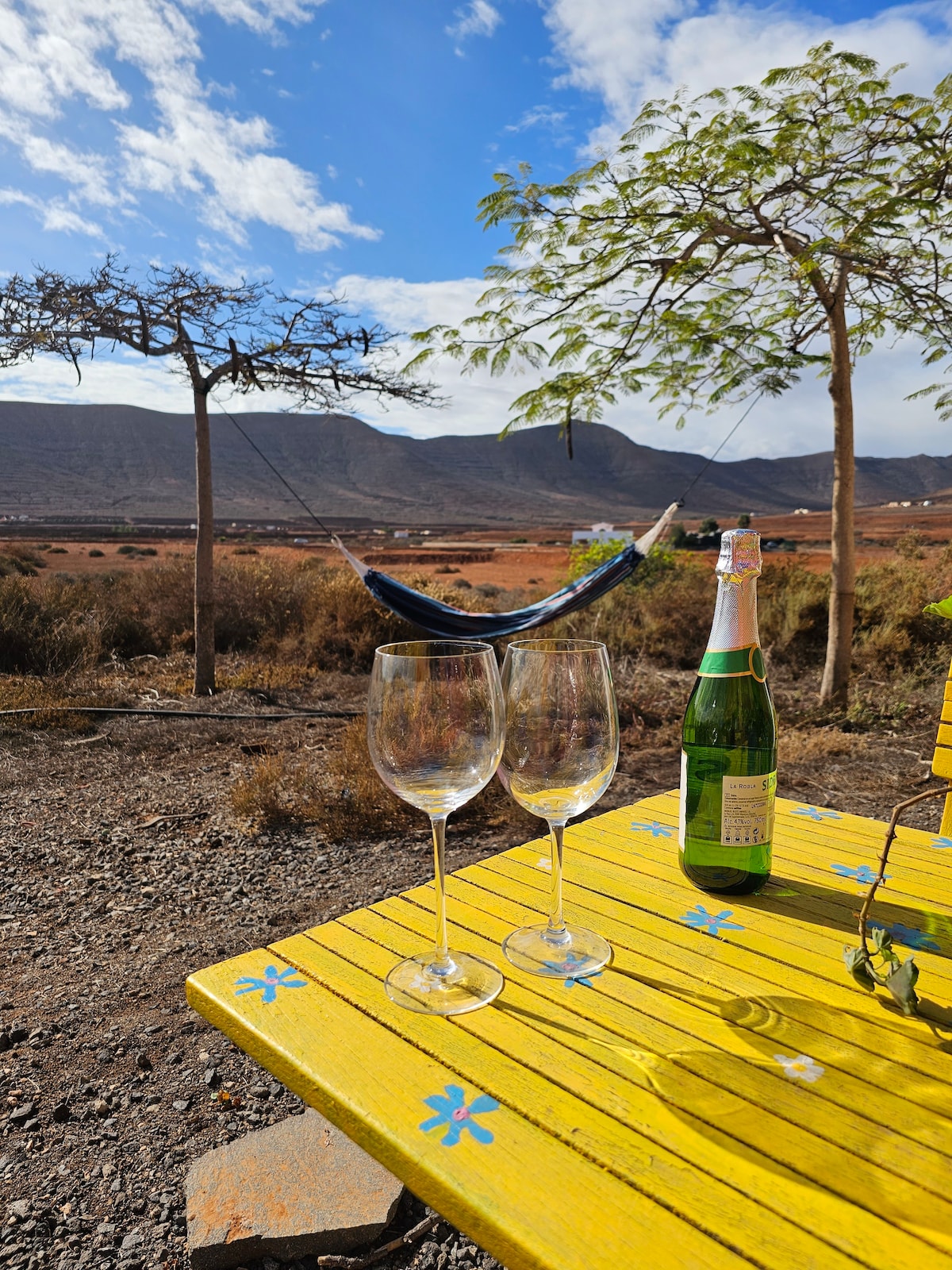 Rustic home placed in rural and quite peaceful zone. Friendly atmosphere to rest and relax, sunbathe, walking or riding bike. Ideal for families with children, there are bicycles and toys. Cotillo beachs are at a distance of 25 Km , Corralejo 30Km, the city and airport at 20Km approximately. We, hostes have decorated our home with souvenirs from our travels.