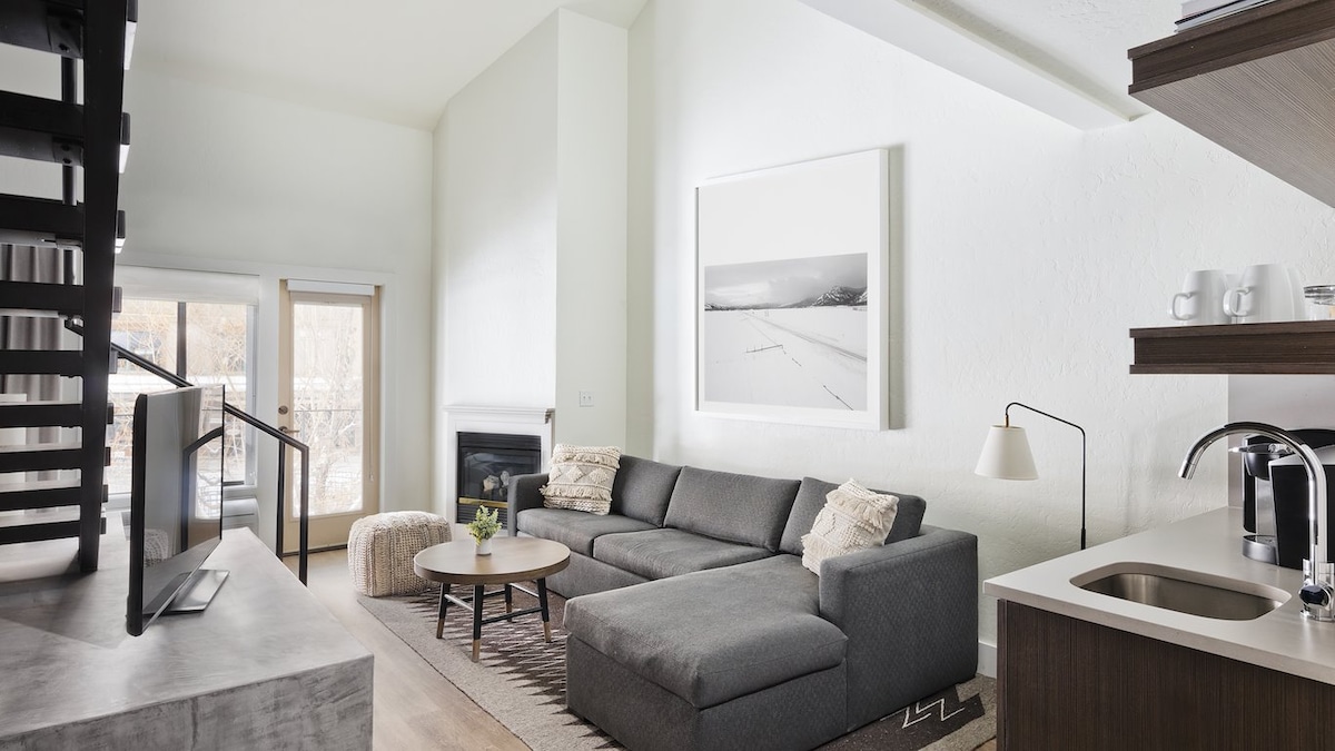 Our newly renovated, residential style One Bedroom King Suites located in downtown Jackson are the perfect choice for your next adventure. Our suites feature a master bedroom with king bed and bathroom, living room with queen sized sofa sleeper and fireplace, a second bathroom, kitchen and private balcony or patio. Sleeps up to four people. We take care of all your cleaning during your stay and after departure. Just leave your keys in your suite and we will take care of the rest.