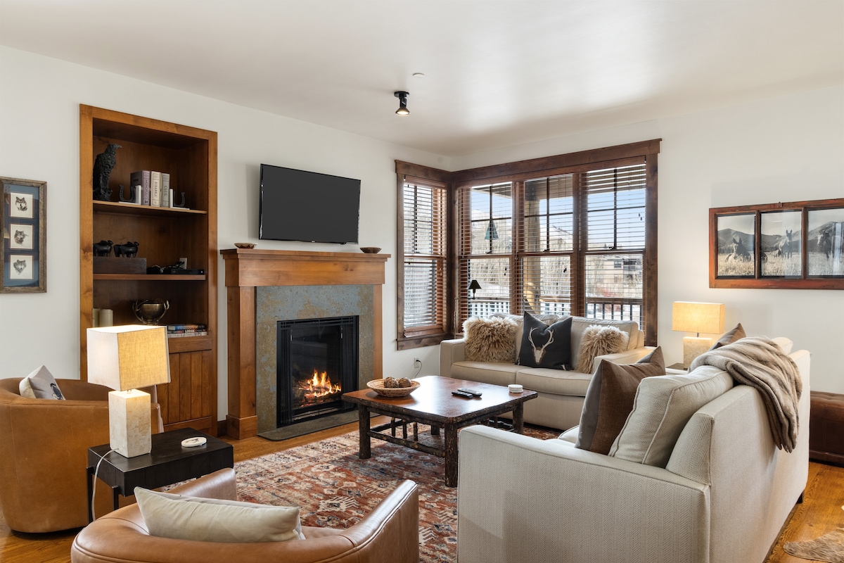 Mountain Modern Townhome in Prime Location - The Aspens | Bear Berry. Enjoy your vacation in our newly renovated 2 bedrm 2 bath fully equipped townhome with your own chef’s kitchen, wood burning fireplace, and outdoor deck with spectacular Teton views! The Bear Berry faces the open wilderness, Teton Mountain Range along the Fish Creek. Renovated to a Mountain Modern vibe with Alpine-inspired living spaces; including vaulted ceilings, spa-like baths, a work space, and a cozy view reading nook.