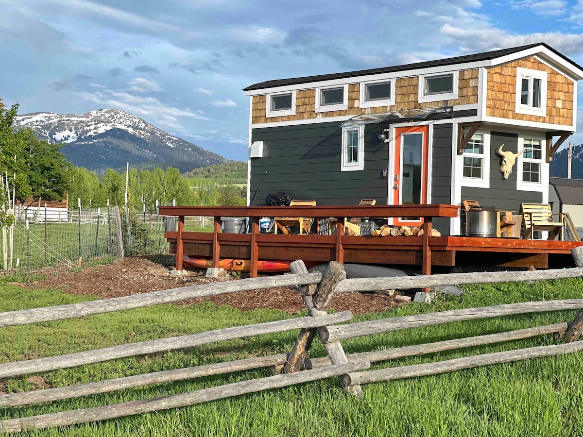 With a stunning location & view, this beautiful tiny house is nestled at the top of the Teton Valley and puts you in the perfect spot to access some of the country's best fishing rivers, ski resorts, bike trails, and National Parks. The home is full of windows with amazing views and has an ultra-comfy living space that is laid out in a way that creates distinct separate spaces to hang out in which works perfectly for couples and well for small groups of adventure buddies, or small families