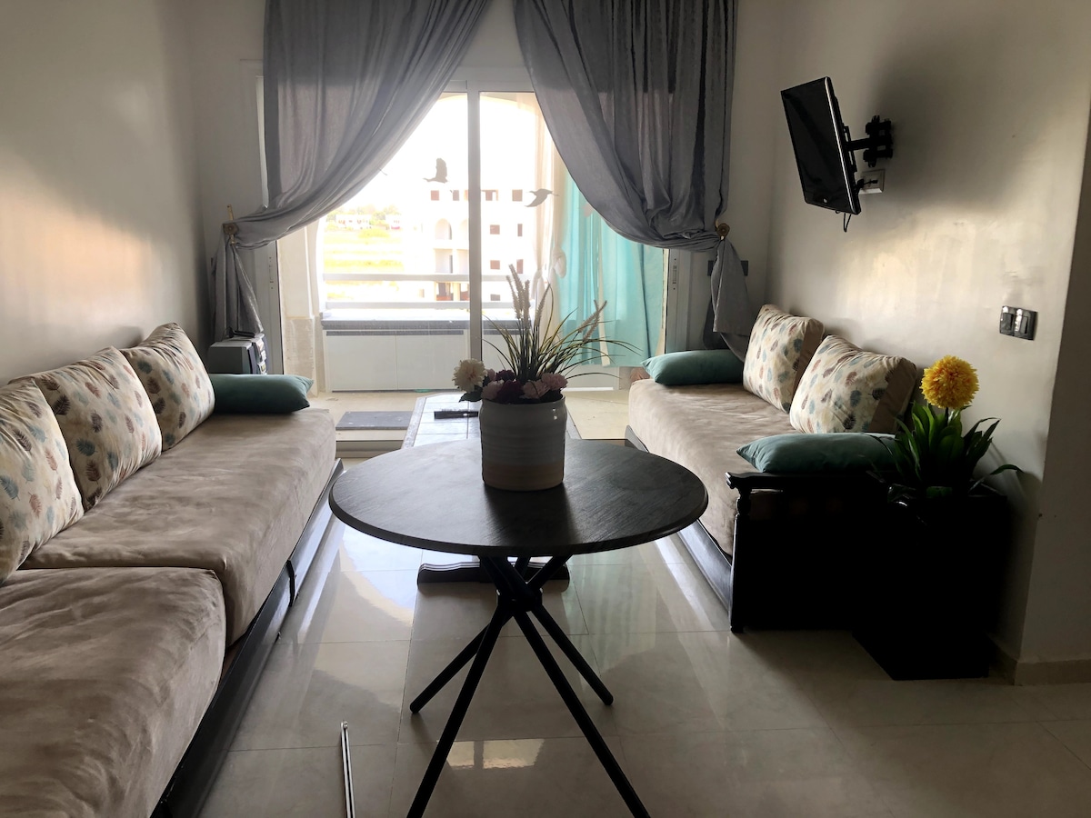 Bienvenue dans votre retraite méditerranéenne ♥️🇲🇦♥️ Appartement neuf confortable et moderne au deuxième étage avec des appareils et des équipements modernes. Situé au cœur de cabo negro dans la résidence de mirador golf 2 , à 10 km de Tetouan et 24 km de Ceuta et à mois de 3 min en voiture de l’une des plus belles plages du Maroc, à quelques pas d’un grand nombre de restaurants et lieux de divertissement pour votre séjour à cabo negro.